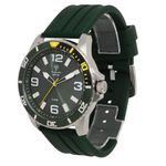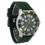DESCRIÇÃO DO PRODUTO: Funções: AnalógicoResistência à Água: 50mDiâmetro da Caixa: 43 mmCaracterísticas: com caixa em Aço e pulseira em Silicone VerdeVidro: Cristal MineralFundo RosqueadoAlimentação do maquinário: BateriaMostrador Verde com NúmerosAro Externo Fixo AzulLinha: Tuguir InfinityGarantia de 1 Ano