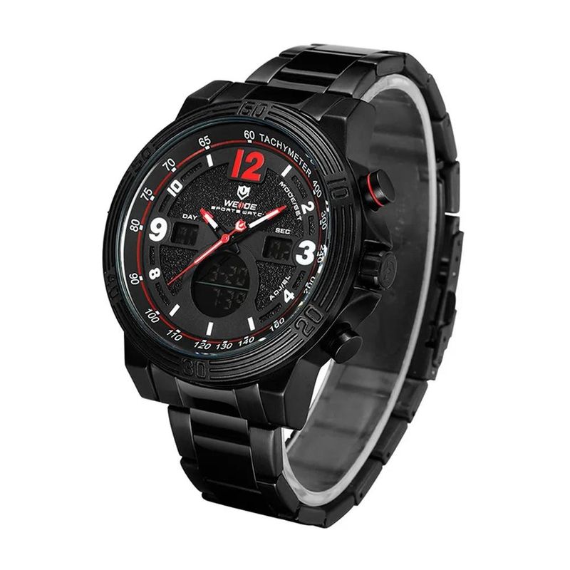 DESCRIÇÃO DO PRODUTO: Funções: Anadigi, Calendário, Iluminação, Alarme, Cronógrafo, Timer, Dual TimeResistência à Água: 30mDiâmetro da Caixa: 49 mmCaracterísticas: com caixa em Metal e pulseira em AçoVidro: Cristal MineralFundo PressãoAlimentação do maquinário: BateriaGarantia de 1 Ano