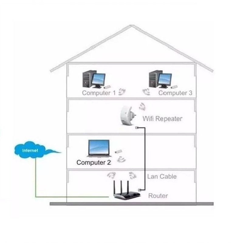 Repetidor De Sinal Wifi Repetidor, Amplificador de Sinal WI-FI Melhora a cobertura wireless em todas as faces WLANWLAN 802.11N para acesso sem fio de alto velocidadeCompatível com rede WLAN 2.4 GHzSegurança máxima das redes WLAN como as criptografias WPA2, WPA a WEP (128/64)Assistência de configuração passo a passo para configuraçãoAntenas integradasBivolt 110v - 220vFunção Botão WPSEquipamento com design Moderno, compacto e discreto Cobertura Superior aos demais ModelosConteúdo da embalagem1 Repetidor Expansor de Sinal Rede Wireless Wifi - Branco1 Cabo RJ - 45