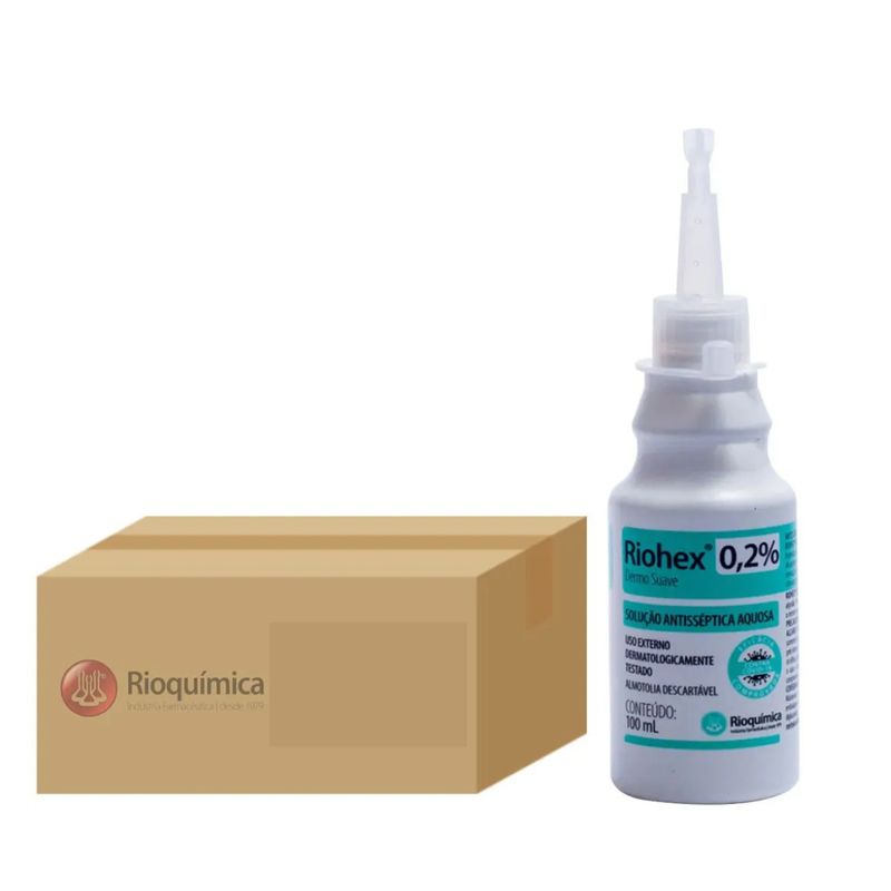 Riohex 0,2% Rioquímica Solução Aquosa Tópica Almotolia 100ml O Riohex® 0,2% é uma solução aquosa composta de digliconato de clorexidina, um antisséptico químico, antifúngico e um bactericida capaz de eliminar tanto bactérias gram-positivas quanto bactérias gram-negativas, demonstrando menos eficácia contra microrganismos gram-negativos, auxilia também contra proliferação de bactérias. Indicado para uso diário em higienização da pele íntegra. Contém 0,2 digliconato de clorexidina. - Solução aquosa; - Antisséptico tópico; - Uso externo; - Antisséptico Dermo Suave; - Sensação suave na pele em sua aplicação diária; - Dermatologicamente testado; - Efeito residual de 4 horas; - Siga as instruções da embalagem.