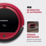 A praticidade na limpeza é garantida com o Robô Aspirador de Pó Smart Clean RB-07! Versátil, ele varre, aspira, limpa e passa pano com apenas 1 toque. O robô limpa com eficiência diversos tipos de piso e possui sensor antiqueda. A combinação da programação inteligente e do design compacto permite que o aspirador sugue poeiras e detritos até embaixo de móveis e em áreas de acesso mais difícil. Saiba mais sobre o RB-07 da Mondial: LIMPEZA INTELIGENTE: Varre, aspira, limpa e passa pano com apenas um toque. FUNÇÃO MOP: Passa pano enquanto aspira, garantindo uma limpeza profunda. ESCOVAS LATERAIS: As 2 escovas laterais foram projetadas para a limpeza de cantos e frestas. SUPER SLIM: Com 7,5cm de altura, entra com facilidade embaixo de móveis, camas e sofás. SENSOR ANTIQUEDA: Identifica os desníveis do piso e o robô aspirador desvia de obstáculos, evitando colisões e quedas. RESERVATÓRIO DE 140mL: Espaço ideal para o robô aspirador de pó sugar poeiras, cabelos, pelos dos pets e detritos. PROTEÇÃO ANTIRRISCO: O robô aspirador possui uma proteção com borracha para preservar móveis e pisos contra riscos e danos. PARA DIFERENTES TIPOS DE PISO: O robô aspirador Mondial limpa com eficiência diversos tipos de piso como madeira, carpetes baixos e pisos frios. 30W DE POTÊNCIA E 90 MINUTOS DE AUTONOMIA: Alta performance de sucção durante o tempo ideal para as tarefas mais pesadas. LÂMPADA PILOTO: Indica o funcionamento do produto e, inclusive, mostra o status da bateria. BIVOLT: Pode ser utilizado tanto na voltagem 127V, quanto na 220V. UM ANO DE GARANTIA MONDIAL: A Mondial é a escolha de milhões de consumidores. Mondial, a escolha inteligente!