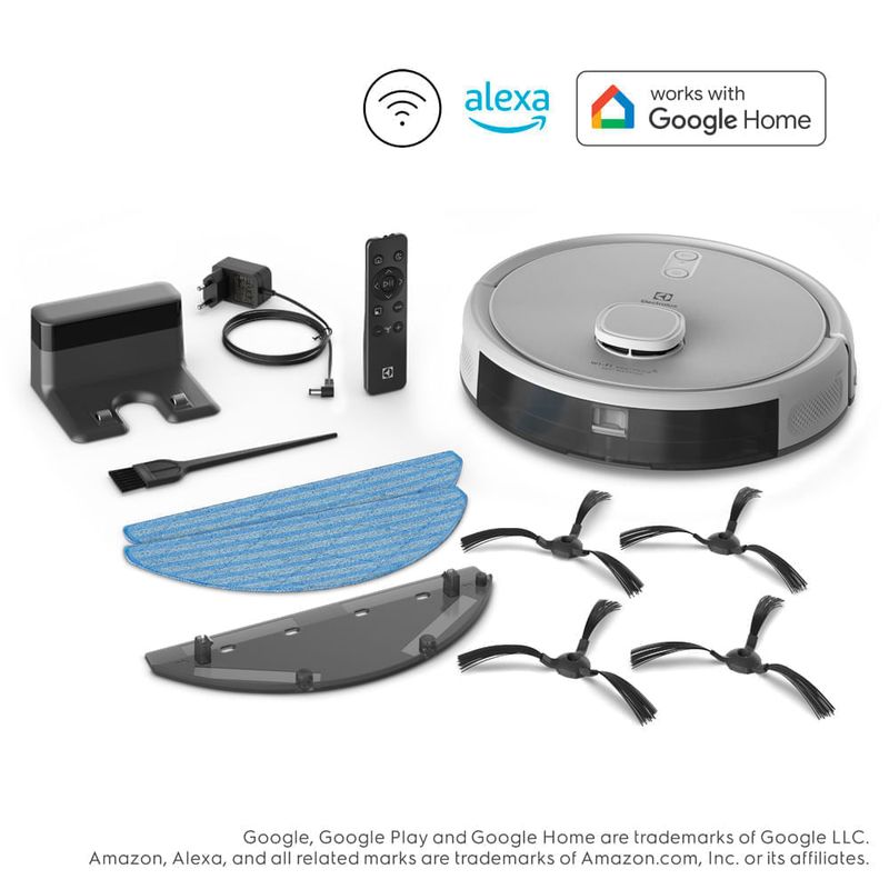 Conheça a superioridade tecnológica do Robô Aspirador Electrolux 4 em 1 Wi-Fi Experience até 1h40 com Mapeamento Branco (ERB62). Inclui controle remoto, para controlar o robô mesmo quando você estiver distante do Smartphone, e acessórios extras.Com Wi-Fi e comando de voz, promove uma limpeza inteligente. Programe e controle seu robô a distância pelo aplicativo Electrolux Home App. Também pode ser controlado por comando de voz e é compatível com Alexa e Google Home. Você decide e o robô Electrolux faz o resto. Conte com maior autonomia para selecionar a potência, garantindo uma limpeza eficiente das superfícies. São três níveis de sucção: mínimo, médio e máximo, além da função Desativar Sucção para usar somente o Mop úmido ou seco. Versátil, você também seleciona o nível de vazão de água: baixo, moderado e alto.O sistema de mapeamento a laser 360° Mapping realiza uma varredura 360° no ambiente, identifica obstáculos e os cômodos para aumentar a área de limpeza e gera um mapa personalizado dos ambientes de sua casa no aplicativo. Este robô inclui um par adicional de escovas rotativas e um pano extra para Mop, que permitem manter a performance de limpeza eficiente por mais tempo.Seu Sensor Antiqueda detecta desníveis, como os das escadas, e o Sensor Anticolisão, com o 360° Mapping, permite que o robô reconheça grandes obstáculos com precisão e altere seu trajeto automaticamente.A bateria de lítio contribui com a durabilidade do produto e oferece uma autonomia de até 1h40 de uso, limpando até 166 m² de uma só vez. Esse produto 4 em 1 varre, aspira e passa Mop úmido ou seco, economizando até 164 horas de limpeza tradicional por ano e garantindo mais tempo para você.Programe sua rotina de limpeza pelo aplicativo. Selecione o horário e os ambientes que deseja limpar conforme os dias da semana. Acione as funções Barreira Virtual e Área Restrita para escolher os espaços que deseja manter fora do alcance do robô.Com ótimo poder de sucção, aspira eficientemente pelos de pet, alguns tipos de farelos, grãos crus e pequenos pedaços de papéis. Já a base de carregamento inteligente faz com que o robô volte sozinho quando a bateria estiver prestes a acabar; após a recarga, o robô volta a limpar de onde parou. O Filtro HEPA devolve um ar mais puro para sua casa. A escova rotativa central e a escova dupla para cantos ampliam o poder de limpeza. Seu recipiente de pó de 478 ml é fácil de limpar, podendo ser lavado quando necessário.São 4 modos de limpeza. O Edge é selecionável apenas pelo Controle Remoto e limpa seguindo os cantos da parede; o Modo Padrão inicia a limpeza pelos cantos e, após finalizar, limpa em zigue-zague; o Modo Spot faz umalimpeza localizada de um ponto selecionado do mapa; e o Modo Y é ideal para ajudar a esfregar as sujeiras difíceis com o Mop úmido.Marca de aspiradores n° 1 em vendas no Brasil, a Electrolux oferece uma cobertura de assistência técnica que atende todo o país, tornando mais fácil a manutenção de seu produto no futuro, caso seja necessário. Para acessar o benefício, basta acionar pelo Electrolux Cuida.É recomendado o uso de acessórios originais Electrolux.