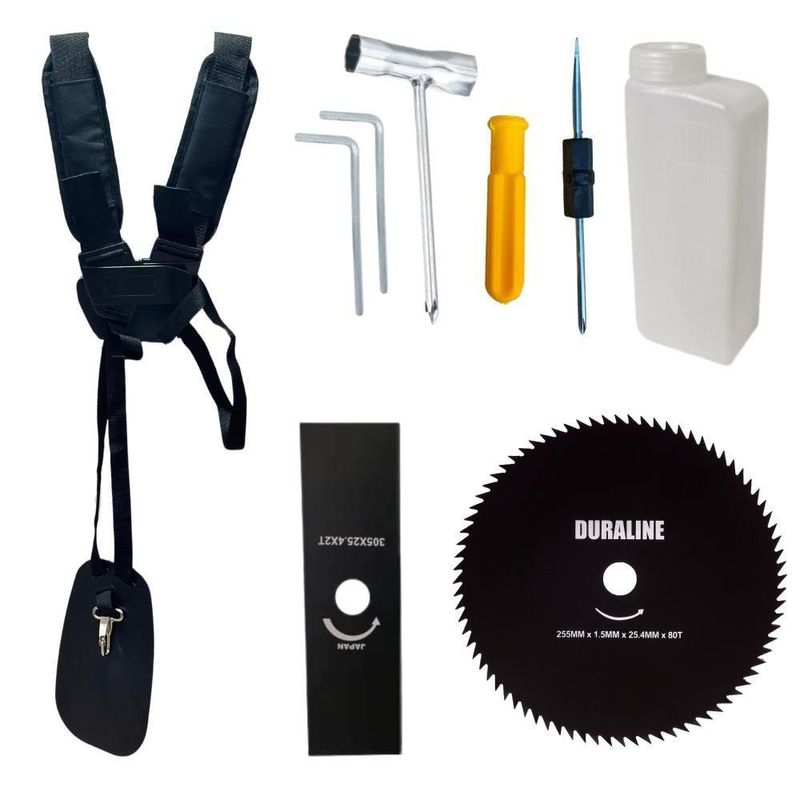 Roçadeira à Gasolina 2T CG430P-p TB 2HP + Lâmina 80 Dentes Roçadeira Lateral ANMAX CG430PP-TB Plus À Gasolina 2 Tempos 43cc 2,0HP + Faca 80 Dentes 255mm 1,5mm - MELHOR CUSTO BENEFÍCIO DO MERCADO- ROÇADEIRA POTENTE E ECONÔMICA- ALTA ROTAÇÃO E PERFORMANCE COM ECONOMIA- ASSISTÊNCIA TÉCNICA EM TODO TERRITÓRIO NACIONAL- PRODUTO COM OFICIAL ANMAX EM TODO BRASIL- PEÇAS DE REPOSIÇÃO DE FÁCIL ACESSO- PRODUTO COM A Roçadeira CG430P-TB Plus conta com motor 2 tempos à gasolina, 43 cilindradas e potência de 2HP. Possui partida leve, com sistema manual, auto-retrátil, e com punhos ergonômicos de fácil aceleração, e também cinto de sustentação duplo com ombreiras almofadadas, proporcionando assim um maior conforto, ergonomia e segurança ao operador. Operador, instrução recomendada para a utilização da máquina: Verifique a montagem e estado dos componentes da roçadeira; Assegure-se de estar utilizando todos os equipamentos de segurança; Leia o manual para saber como dar a partida em uma roçadeira; Segure a roçadeira com ambas as mãos durante a operação; Mantenha todas as partes de seu corpo longe da roçadeira durante sua operação; Sempre desligue o motor da roçadeira antes de deixá-la desassistida; Transporte sempre a roçadeira com o motor desligado; Proceda com a manutenção e limpeza da roçadeira. Há cuidados básicos que devem ser levados em conta para prolongar a vida útil de cada equipamento, dessa forma, além de manter o bom funcionamento você pode prevenir futuras falhas. Lembrando que se não cumprir as instruções de segurança pode resultar em lesões graves. ESPECIFICAÇÕES TÉCNICAS: - Tipo: Roçadeira lateral, com guidão- Cód: 000096- Modelo: CG430P-TB Plus- Marca: ANMAX- Motor: À Gasolina, 2 tempos- Potência: 2HP- Cilindradas: 43cc- Rotação: 9.000RPM- Ignição: Eletrônica- Partida: Manual Auto-retrátil- Carburador: Diafragma com Regulagem- Embreagem: Centrifuga- Capacidade do tanque de combustível: 1200ml- Autonomia: Aprox. 60min- Eixo Cardã: Eixo Rígido de 8mm x 9 estrias- Tubo do Eixo Cardã: Tubo de Alumínio 26mm - 153cm- Guidão: Bi-Partido fixado com suportes parafs- Lâmina: 2 Pontas, 255mm, espessura 2mm, furo 1- Combustível: Gasolina com óleo 2 tempos, proporção 25:1- Carretel Nylon: Automático, libera o fio com um toque no chão- Peso: 8,50 kg EXTRA: DISCO DE CORTE 80 DENTES - DIÂM. 255MM X 25,4 MM (1) + Anel Redutor Para 20MM; Espessura 1,5MM O DISCO DE CORTE 80 Dentes acompanha um anel de redução que pode ser utiizada para roçadeiras de furo 20mm ou 25mm, sendo feita em aço cromo vanádio que garante mais segurança, desempenho e durabilidade. É uma lâmina balanceada, fazendo com que haja menor vibração, corte contínuo e suave, com mais conforto ao operador e mais longevidade para a roçadeira. Possui maior rendimento no trabalho e não precisa ser afiada antes do uso. É um disco multiuso pois pode ser aplicado para diferentes trabalhos, tendo em vista que pode serrar madeiras até 10cm, dentre elas esse modelo corta: Arbustos, Pequenas Árvores, Capim Grosso, Capim Elefante, Capim Guanxuma, Capim Annoni, Vassourinha, Bambu, Cana de Açúcar , Mato Alto, Capim Napier, Capim Sapê, Touceiras entre outros. ESPECIFICAÇÕES TÉCNICAS:- Tipo de Lâmina: Circular- Quantidade de Dentes: 80- Diâmetro: 255mm- Furo: 25mm Com Redutor Para 20mm- Espessura: 1,5mm ITENS INCLUSOS: - 01: Roçadeira CG430P-TB Plus;- 01: Carretel com Nylon;- 01: Lâmina 2 pontas;- 01: Lâmina 80 Dentes;- 01: Cinto Duplo com Ombreiras Almofadadas;- 01: Misturador de combustível;- 01: Kit ferramentas de manutenção;- 01: Manual de Instrução;
