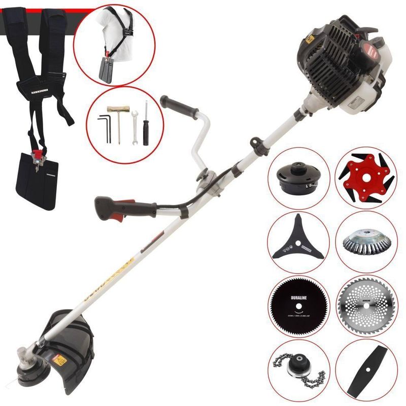 Roçadeira Kawashima Kw52le à Gasolina 52c 2,5hp 2t + Faca 2 Pontas + Faca 40 Dentes + Faca 80 Dentes + Faca 6 Pontas +Roçadeira Profissional Kawashima KW52-LE À Gasolina 2T 52cc 2,5HP Com Lâmina 3 Pontas + Faca 2 Pontas 330mm 2,7mm + Faca 40 Dentes 255mm 2mm + Faca 80 Dentes 255mm 1,5mm + Faca 6 Pontas 250mm + Escova Rotativa 38 Cerdas 200mm + Trimmer- MARCA KAWASHIMA - A ROÇADEIRA MAIS VENDIDA DO BRASIL- ROÇADEIRA POTENTE E ECONÔMICA- ALTA ROTAÇÃO E PERFORMANCE COM ECONOMIA- ASSISTÊNCIA TÉCNICA EM TODO TERRITÓRIO NACIONAL- PRODUTO COM 6 MESES DE GARANTIA- PEÇAS DE REPOSIÇÃO DE FÁCIL ACESSO- JÁ VEM MONTADA EM CAIXA ÚNICA PRONTA PARA O USO- EQUIPE DE PÓS-VENDAS A DISPOSIÇÃOA Roçadeira Kawashima KW52LE conta com motor 2 tempos à gasolina, 52 cilindradas e potência de 2,5HP. Projetada para facilitar o trabalho de roçada de capim, arbustos, pastagens, controle de pastos, trabalhos de jardinagem, limpeza e manutenção de grandes áreas verdes com sua utilização em sítios; fazendas e chácaras. Ideal também para manutenção e limpeza de vias públicas e rodovias.ESPECIFICAÇÕES TÉCNICAS:-Modelo: KW52-LE-Marca: Kawashima-Tipo: Lateral, com guidão-Diâmetro da haste: 28mm-Eixo cardã (diâmetro x estria): 8 x 9-Motor: Kawashima M-5200E-Tipo do motor: 2 tempos, gasolina-Cilindradas: 52cc-Potência: 2,5HP-Tipo do carburador: Diafragma, com regulagem-Combustível: Gasolina e Óleo 2T (25:1)-Capacidade do tanque de combustível: 1,20L-Peso: 9Kg-Diâmetro de encaixe da lâmina: 1'' (25,4mm)EXTRA: LÂMINA 2 PONTASÉ uma Faca Multiuso de 2 pontas que pode ser aplicada para diferentes trabalhos, possui material reforçado que é ideal para trabalhos pesados, podendo cortar os seguintes capins: Capim Grosso, Capim Elefante, Guanxuma, Annoni, Vassourinha, Capim Napier, Capim Sapê e entre outras variantes de capins.ESPECIFICAÇÕES TÉCNICAS:- Tipo de Lâmina: Facão- Quantidade de Pontas: 2- Diâmetro: 330mm- Furo: 25mm Com Redutor Para 20mm- Espessura: 2,7mmEXTRA: DISCO DE CORTE 40 DENTES VIDEAPode ser aplicado para diferentes trabalhos, tendo em vista que pode serrar madeiras até 10cm, dentre elas esse modelo corta: Arbustos, Pequenas Árvores, Capim Grosso, Capim Elefante, Capim Guanxuma, Capim Annoni, Vassourinha, Bambu, Cana de Açúcar, Mato Alto, Capim Napier, Capim Sapê, Touceiras entre outros.ESPECIFICAÇÕES TÉCNICAS:- Tipo de Lâmina: Circular Vídea- Quantidade de Dentes: 40- Diâmetro: 255mm- Furo: 25mm (1'') Com Anel Redutor Para 20mm- Espessura: 2mmEXTRA: DISCO DE CORTE 80 DENTESÉ um disco multiuso pois pode ser aplicado para diferentes trabalhos, tendo em vista que pode serrar madeiras até 10cm, dentre elas esse modelo corta: Arbustos, Pequenas Árvores, Capim Grosso, Capim Elefante, Capim Guanxuma, Capim Annoni, Vassourinha, Bambu, Cana de Açúcar , Mato Alto, Capim Napier, Capim Sapê, Touceiras entre outros.ESPECIFICAÇÕES TÉCNICAS:- Tipo de Lâmina: Circular- Quantidade de Dentes: 80- Diâmetro: 255mm- Furo: 25mm Com Redutor Para 20mm- Espessura: 1,5mmEXTRA: Lâminia 6 Pontas Terra:ESPECIFICAÇÕES TÉCNICAS:Dados Técnicos:- Diâmetro: 250mm- Furo: 25mm- Espessura: 0,5mm- Material: Lâminas de metalEXTRA: ESCOVA ROTATIVA 38 CERDASA Escova pode ser aplicada para diferentes trabalhos, dentre elas: Limpeza de Pavers, Limpeza de Calçadas, Limpeza de concreto, Limpeza de Pavimentos, Remoção de musgos e Remoção de ervas daninhas.ESPECIFICAÇÕES TÉCNICAS:- Tipo de Escova: Rotativa com cerdas em aço- Quantidade de Cerdas: 38- Diâmetro: 200mm- Furo: 25mm Com Redutor Para 20mm- Espessura: 50mmEXTRA: Trimmer Com Corrente de Motosserra:Dados Técnicos:- Diâmetro: 330mm- Furo: 25mm- Espessura: 60mm- Material: Lâminas corrente de motosserraITENS INCLUSOS:-01: Lâmina 2 Pontas;-01: Lâmina 3 Pontas;-01: Lâmina 6 pontas-01: Lâmina 40 Dentes;-01: Lâmina 80 Dentes;-01: Escova rotativa 38 cerdas;-01: Trimmer-01: Carretel de fio de nylon;-01: Cinto de sustentação duplo;-01: Misturador de combustível;-01: Kit de ferramentas;-01: Manual de Instruções; Marca: Kawashima | Com sistema antivibração: Não | Selo SEC: N/A | Modelo: VAR01KW52LE24080638T | Motivo de GTIN vazio: O produto é um kit ou pack | Capacidade do tanque de Óleo: N/A | Fonte do produto: N/A | Tipo de guiador: Aberto | Com regulação de guiador: Sim | Sistema de partida: Manual | Comprimento total: 188cm | Com guarda de segurança: Sim | Capacidade do tanque de combustível: 1,2L | MPN: 84678900 | Diâmetro de corte do disco de corte: 255mm | Largura total: 50cm | Tempos do motor: 2 | Eixo de transmissão: Rígido | Peso: 12KG | Tipos de máquinas: Roçadeira | Potência do motor: 2,5HP | Cilindrada: 52cc | Tipo de eixo da máquina: Reto | Diâmetro de corte da tanza: 255mm | Sistemas de corte: Lâmina e Fio de Nylon | Acessórios incluídos: Cinto de sustentação duplo, Misturador de combustível, Kit de ferramentas | Condição do item: Novo | Código universal de produto: 0703363311447 | É kit: Sim | SKU: VAR01KW52LE24080638T