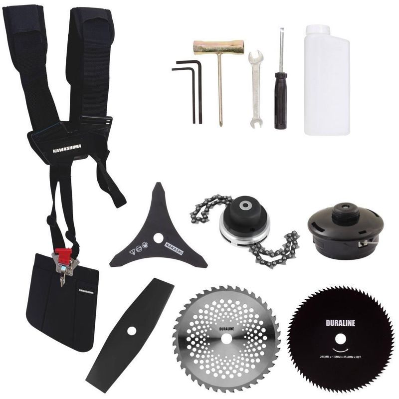 Roçadeira Profissional Lateral Kawashima Kw43le à Gasolina 43cc 1,7hp + Faca 2 Pontas 330mm + Faca 40 Dentes 255mm + FaRoçadeira Profissional Kawashima KW43-LE À Gasolina 2T 43cc 1,7HP Com Lâmina 3 Pontas + Faca 2 Pontas 330mm 2,7mm + Faca 40 Dentes 255mm 2mm + Faca 80 Dentes 255mm 1,5mm + Trimmer- MARCA KAWASHIMA - A ROÇADEIRA MAIS VENDIDA DO BRASIL- ROÇADEIRA POTENTE E ECONÔMICA- ALTA ROTAÇÃO E PERFORMANCE COM ECONOMIA- ASSISTÊNCIA TÉCNICA EM TODO TERRITÓRIO NACIONAL- PRODUTO COM 6 MESES DE GARANTIA- PEÇAS DE REPOSIÇÃO DE FÁCIL ACESSO- JÁ VEM MONTADA EM CAIXA ÚNICA PRONTA PARA O USO- EQUIPE DE PÓS-VENDAS A DISPOSIÇÃOA Roçadeira Kawashima KW43LE conta com motor 2 tempos à gasolina, 43 cilindradas e potência de 1,7HP. Projetada para facilitar o trabalho de roçada de capim, arbustos, pastagens, controle de pastos, trabalhos de jardinagem, limpeza e manutenção de grandes áreas verdes com sua utilização em sítios; fazendas e chácaras. Ideal também para manutenção e limpeza de vias públicas e rodovias.ESPECIFICAÇÕES TÉCNICAS:-Modelo: KW43-LE-Marca: Kawashima-Tipo: Lateral, com guidão-Diâmetro da haste: 28mm-Eixo cardã (diâmetro x estria): 8 x 9-Motor: Kawashima M-4300E-Tipo do motor: 2 tempos, gasolina-Cilindradas: 43cc-Potência: 1,7HP-Tipo do carburador: Diafragma, com regulagem-Combustível: Gasolina e Óleo 2T (25:1)-Capacidade do tanque de combustível: 1,10L-Peso: 8,5kg-Diâmetro de encaixe da lâmina: 1'' (25,4mm)EXTRA: LÂMINA 2 PONTASÉ uma Faca Multiuso de 2 pontas que pode ser aplicada para diferentes trabalhos, possui material reforçado que é ideal para trabalhos pesados, podendo cortar os seguintes capins: Capim Grosso, Capim Elefante, Guanxuma, Annoni, Vassourinha, Capim Napier, Capim Sapê e entre outras variantes de capins.ESPECIFICAÇÕES TÉCNICAS:- Tipo de Lâmina: Facão- Quantidade de Pontas: 2- Diâmetro: 330mm- Furo: 25mm Com Redutor Para 20mm- Espessura: 2,7mmEXTRA: DISCO DE CORTE 40 DENTES VIDEAPode ser aplicado para diferentes trabalhos, tendo em vista que pode serrar madeiras até 10cm, dentre elas esse modelo corta: Arbustos, Pequenas Árvores, Capim Grosso, Capim Elefante, Capim Guanxuma, Capim Annoni, Vassourinha, Bambu, Cana de Açúcar, Mato Alto, Capim Napier, Capim Sapê, Touceiras entre outros.ESPECIFICAÇÕES TÉCNICAS:- Tipo de Lâmina: Circular Vídea- Quantidade de Dentes: 40- Diâmetro: 255mm- Furo: 25mm (1'') Com Anel Redutor Para 20mm- Espessura: 2mmEXTRA: DISCO DE CORTE 80 DENTESÉ um disco multiuso pois pode ser aplicado para diferentes trabalhos, tendo em vista que pode serrar madeiras até 10cm, dentre elas esse modelo corta: Arbustos, Pequenas Árvores, Capim Grosso, Capim Elefante, Capim Guanxuma, Capim Annoni, Vassourinha, Bambu, Cana de Açúcar , Mato Alto, Capim Napier, Capim Sapê, Touceiras entre outros.ESPECIFICAÇÕES TÉCNICAS:- Tipo de Lâmina: Circular- Quantidade de Dentes: 80- Diâmetro: 255mm- Furo: 25mm Com Redutor Para 20mm- Espessura: 1,5mmEXTRA: Trimmer Com Corrente de Motosserra:Dados Técnicos:- Diâmetro: 330mm- Furo: 25mm- Espessura: 60mm- Material: Lâminas corrente de motosserraITENS INCLUSOS:-01: Lâmina 2 Pontas;-01: Lâmina 3 Pontas;-01: Lâmina 40 Dentes;-01: Lâmina 80 Dentes;- 01: Trimmer-01: Carretel de fio de nylon;-01: Cinto de sustentação duplo;-01: Misturador de combustível;-01: Kit de ferramentas;-01: Manual de Instruções; Marca: Kawashima | Com sistema antivibração: Não | Selo SEC: N/A | Modelo: VAR02KW43LE2P40D80DTM | Motivo de GTIN vazio: O produto é um kit ou pack | Capacidade do tanque de Óleo: N/A | Fonte do produto: N/A | Tipo de guiador: Aberto | Com regulação de guiador: Sim | Sistema de partida: Manual | Comprimento total: 188cm | Com guarda de segurança: Sim | Capacidade do tanque de combustível: 1,1L | MPN: 84678900 | Diâmetro de corte do disco de corte: 255mm | Largura total: 50cm | Tempos do motor: 2 | Eixo de transmissão: Rígido | Peso: 12Kg | Tipos de máquinas: Roçadeira | Cilindrada: 43cc | Tipo de eixo da máquina: Reto | Diâmetro de corte da tanza: 255mm | Sistemas de corte: Lâmina e Fio de Nylon | SKU: VAR02KW43LE2P40D80DTM | Acessórios incluídos: Lâmina, Carretel de Nylon, Cinto de Sustentação, MIsturador de Combustível e Kit de Chaves | Condição do item: Novo | Código universal de produto: 0703363308959 | É kit: Sim | Potência do motor: 1,7HP