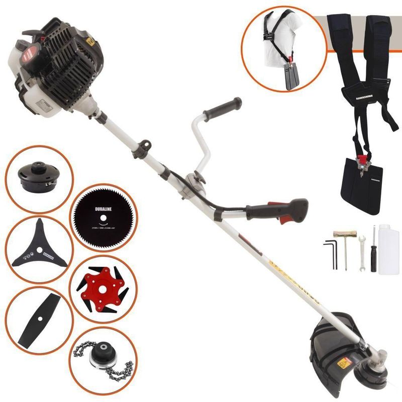 Roçadeira Profissional Lateral Kawashima Kw43le à Gasolina 43cc 1,7hp + Faca 2 Pontas 330mm + Faca 80 Dentes 255mm + TRoçadeira Profissional Kawashima KW43-LE À Gasolina 2T 43cc 1,7HP Com Lâmina 3 Pontas + Faca 2 Pontas 330mm 2,7mm + Faca 80 Dentes 255mm 1,5mm + Trimmer + Faca 6 Pontas 250mm- MARCA KAWASHIMA - A ROÇADEIRA MAIS VENDIDA DO BRASIL- ROÇADEIRA POTENTE E ECONÔMICA- ALTA ROTAÇÃO E PERFORMANCE COM ECONOMIA- ASSISTÊNCIA TÉCNICA EM TODO TERRITÓRIO NACIONAL- PRODUTO COM 6 MESES DE GARANTIA- PEÇAS DE REPOSIÇÃO DE FÁCIL ACESSO- JÁ VEM MONTADA EM CAIXA ÚNICA PRONTA PARA O USO- EQUIPE DE PÓS-VENDAS A DISPOSIÇÃOA Roçadeira Kawashima KW43LE conta com motor 2 tempos à gasolina, 43 cilindradas e potência de 1,7HP. Projetada para facilitar o trabalho de roçada de capim, arbustos, pastagens, controle de pastos, trabalhos de jardinagem, limpeza e manutenção de grandes áreas verdes com sua utilização em sítios; fazendas e chácaras. Ideal também para manutenção e limpeza de vias públicas e rodovias.ESPECIFICAÇÕES TÉCNICAS:-Modelo: KW43-LE-Marca: Kawashima-Tipo: Lateral, com guidão-Diâmetro da haste: 28mm-Eixo cardã (diâmetro x estria): 8 x 9-Motor: Kawashima M-4300E-Tipo do motor: 2 tempos, gasolina-Cilindradas: 43cc-Potência: 1,7HP-Tipo do carburador: Diafragma, com regulagem-Combustível: Gasolina e Óleo 2T (25:1)-Capacidade do tanque de combustível: 1,10L-Peso: 8,5kg-Diâmetro de encaixe da lâmina: 1'' (25,4mm)EXTRA: LÂMINA 2 PONTASÉ uma Faca Multiuso de 2 pontas que pode ser aplicada para diferentes trabalhos, possui material reforçado que é ideal para trabalhos pesados, podendo cortar os seguintes capins: Capim Grosso, Capim Elefante, Guanxuma, Annoni, Vassourinha, Capim Napier, Capim Sapê e entre outras variantes de capins.ESPECIFICAÇÕES TÉCNICAS:- Tipo de Lâmina: Facão- Quantidade de Pontas: 2- Diâmetro: 330mm- Furo: 25mm Com Redutor Para 20mm- Espessura: 2,7mmEXTRA: DISCO DE CORTE 80 DENTESÉ um disco multiuso pois pode ser aplicado para diferentes trabalhos, tendo em vista que pode serrar madeiras até 10cm, dentre elas esse modelo corta: Arbustos, Pequenas Árvores, Capim Grosso, Capim Elefante, Capim Guanxuma, Capim Annoni, Vassourinha, Bambu, Cana de Açúcar , Mato Alto, Capim Napier, Capim Sapê, Touceiras entre outros.ESPECIFICAÇÕES TÉCNICAS:- Tipo de Lâmina: Circular- Quantidade de Dentes: 80- Diâmetro: 255mm- Furo: 25mm Com Redutor Para 20mm- Espessura: 1,5mmEXTRA: Trimmer Com Corrente de Motosserra:Dados Técnicos:- Diâmetro: 330mm- Furo: 25mm- Espessura: 60mm- Material: Lâminas corrente de motosserraEXTRA: Lâminia 6 Pontas Terra:ESPECIFICAÇÕES TÉCNICAS:Dados Técnicos:- Diâmetro: 250mm- Furo: 25mm- Espessura: 0,5mm- Material: Lâminas de metalITENS INCLUSOS:-01: Lâmina 2 Pontas;-01: Lâmina 3 Pontas;- 01: Lâmina 6 pontas-01: Lâmina 80 Dentes;- 01: Trimmer-01: Carretel de fio de nylon;-01: Cinto de sustentação duplo;-01: Misturador de combustível;-01: Kit de ferramentas;-01: Manual de Instruções; Marca: Kawashima | Com sistema antivibração: Não | Selo SEC: N/A | Modelo: VAR02KW43LE2P80DTM6P | Motivo de GTIN vazio: O produto é um kit ou pack | Capacidade do tanque de Óleo: N/A | Fonte do produto: N/A | Tipo de guiador: Aberto | Com regulação de guiador: Sim | Sistema de partida: Manual | Comprimento total: 188cm | Com guarda de segurança: Sim | Capacidade do tanque de combustível: 1,1L | MPN: 84678900 | Diâmetro de corte do disco de corte: 255mm | Largura total: 50cm | Tempos do motor: 2 | Eixo de transmissão: Rígido | Peso: 12Kg | Tipos de máquinas: Roçadeira | Cilindrada: 43cc | Tipo de eixo da máquina: Reto | Diâmetro de corte da tanza: 255mm | Sistemas de corte: Lâmina e Fio de Nylon | SKU: VAR02KW43LE2P80DTM6P | Acessórios incluídos: Lâmina, Carretel de Nylon, Cinto de Sustentação, MIsturador de Combustível e Kit de Chaves | Condição do item: Novo | Código universal de produto: 0703363308782 | É kit: Sim | Potência do motor: 1,7HP