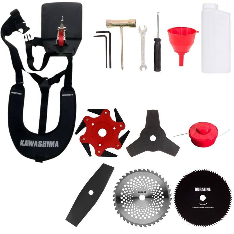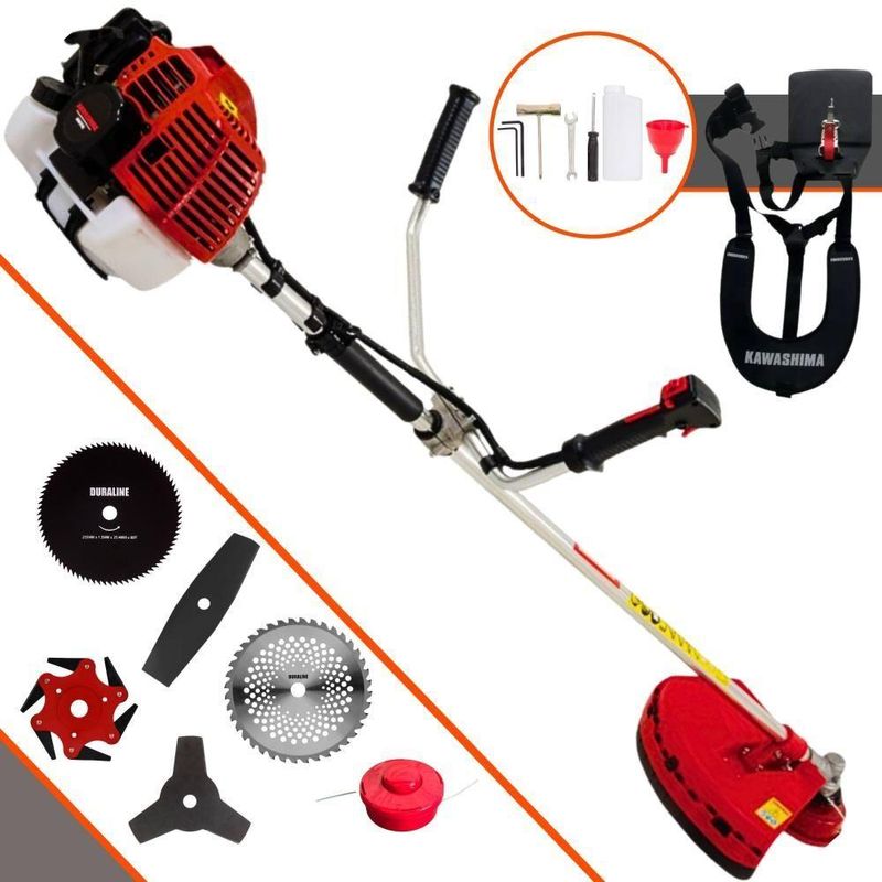 Roçadeira Profissional Lateral Kawashima Kw52l à Gasolina 52c 2,5hp + Faca 2 Pontas + Faca 40 Dentes + Faca 80 Dentes +Roçadeira Profissional Lateral Kawashima KW52-L À Gasolina 2T 52c 2,5HP Com Lâmina 3 Pontas + Faca 2 Pontas 330mm + Faca 40 Dentes 255mm + Faca 80 Dentes 255mm + Faca 6 Pontas 250mmMARCA KAWASHIMA - A ROÇADEIRA MAIS VENDIDA DO BRASIL- ROÇADEIRA POTENTE E ECONÔMICA- ALTA ROTAÇÃO E PERFORMANCE COM ECONOMIA- ASSISTÊNCIA TÉCNICA EM TODO TERRITÓRIO NACIONAL- PRODUTO COM 6 MESES DE GARANTIA- PEÇAS DE REPOSIÇÃO DE FÁCIL ACESSO- EQUIPE DE PÓS-VENDAS A DISPOSIÇÃOA Roçadeira Kawashima KW52L conta com motor 2 tempos à gasolina, 52 cilindradas e potência de 2,5HP. Projetada para facilitar o trabalho de roçada de capim, arbustos, pastagens, controle de pastos, trabalhos de jardinagem, limpeza e manutenção de grandes áreas verdes com sua utilização em sítios; fazendas e chácaras. Ideal também para manutenção e limpeza de vias públicas e rodovias. Desenvolvida com uma estrutura resistente e suporte do guidão reforçado, seus componentes possuem alta durabilidade. A vantagem da roçadeira é que pode ser usada em locais irregulares, morros, buracos, florestas, entre outro com dificuldade de acesso. Produto de alta qualidade, desempenho e durabilidade.ESPECIFICAÇÕES TÉCNICAS:-Modelo: KW52-L-Marca: Kawashima-Tipo: Lateral, com guidão-Diâmetro da haste: 28mm-Eixo cardã (diâmetro x estria): 8 x 9-Motor: Kawashima M-5200-Tipo do motor: 2 tempos, gasolina-Cilindradas: 52cc-Potência: 2,5HP-Tipo do carburador: Diafragma, com regulagem-Combustível: Gasolina e Óleo 2T (25:1)-Capacidade do tanque de combustível: 1,10L-Peso: 8Kg-Diâmetro de encaixe da lâmina: 1'' (25,4mm)EXTRA: LÂMINA 2 PONTAS - Tamanho: 330MM Furo: 25,4 MM (1) / 20MM Espessura 2,70MMESPECIFICAÇÕES TÉCNICAS:- Tipo de Lâmina: Facão- Quantidade de Pontas: 2- Diâmetro: 330mm- Furo: 25mm Com Redutor Para 20mm- Espessura: 2,7mmEXTRA: DISCO DE CORTE 40 DENTES VIDEA - DIÂM. 255MM X 25,4 MM (1) + Anel Redutor Para 20MM; Espessura 1,3MMESPECIFICAÇÕES TÉCNICAS:- Tipo de Lâmina: Circular Vídea- Quantidade de Dentes: 40- Diâmetro: 255mm- Furo: 25mm (1'') Com Anel Redutor Para 20mm- Espessura: 2mmEXTRA: DISCO DE CORTE 80 DENTES - DIÂM. 255MM X 25,4 MM (1) + Anel Redutor Para 20MM; Espessura 1,5MMESPECIFICAÇÕES TÉCNICAS:- Tipo de Lâmina: Circular- Quantidade de Dentes: 80- Diâmetro: 255mm- Furo: 25mm Com Redutor Para 20mm- Espessura: 1,5mmEXTRA: Lâminia 6 Pontas Terra:ESPECIFICAÇÕES TÉCNICAS:Dados Técnicos:- Diâmetro: 250mm- Furo: 25mm- Espessura: 0,5mm- Material: Lâminas de metalITENS INCLUSOS:-01: Lâmina 2 Pontas;-01: Lâmina 3 Pontas;-01: Lâmina 6 pontas-01: Lâmina 40 Dentes;-01: Lâmina 80 Dentes;-01: Carretel de fio de nylon;-01: Cinto de sustentação duplo;-01: Misturador de combustível;-01: Kit de ferramentas;-01: Manual de Instruções; Marca: Kawashima | Com sistema antivibração: Não | Selo SEC: N/A | Modelo: VAR01KW52L2P40D80D6P | Motivo de GTIN vazio: O produto é um kit ou pack | Capacidade do tanque de Óleo: N/A | Fonte do produto: N/A | Tipo de guiador: Aberto | Com regulação de guiador: Sim | Sistema de partida: Manual | Comprimento total: 188cm | Com guarda de segurança: Sim | Capacidade do tanque de combustível: 1,2L | MPN: 84678900 | Diâmetro de corte do disco de corte: 255mm | Largura total: 50cm | Tempos do motor: 2 | Eixo de transmissão: Rígido | Peso: 12Kg | Tipos de máquinas: Roçadeira | Cilindrada: 52cc | Tipo de eixo da máquina: Reto | Diâmetro de corte da tanza: 255mm | Sistemas de corte: Lâmina & Nylon | Acessórios incluídos: Faca 3 pontas, Cinto Duplo e Kit Ferramentas | Condição do item: Novo | Código universal de produto: 0703363310075 | É kit: Sim | Potência do motor: 2,5HP | SKU: VAR01KW52L2P40D80D6P