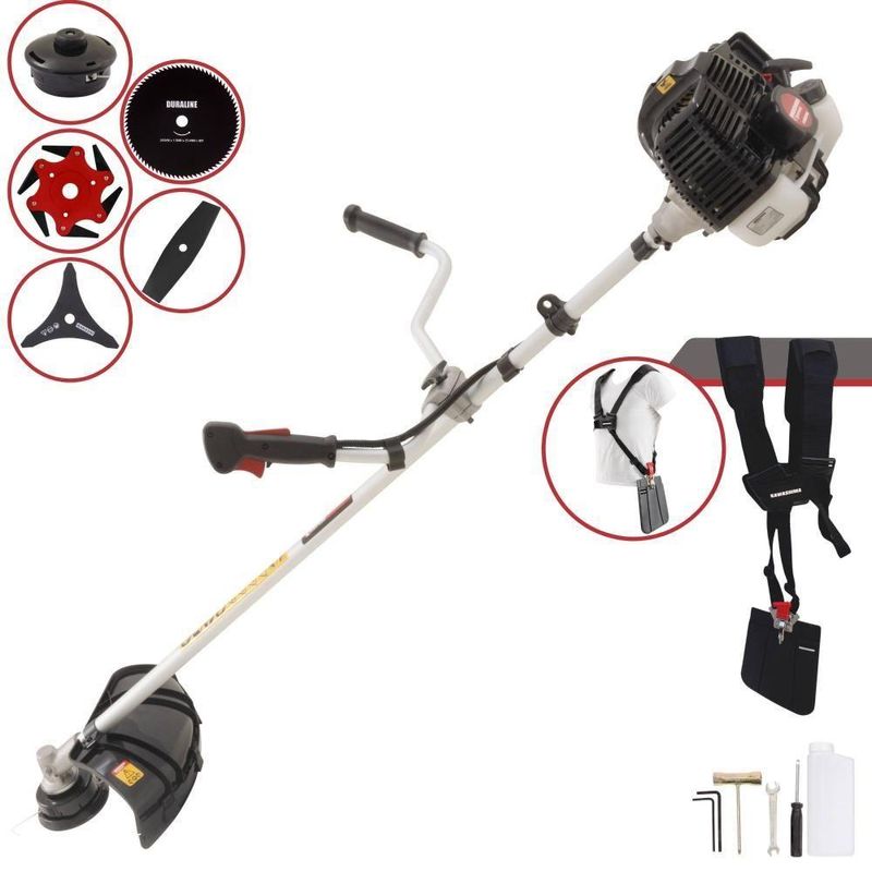 Roçadeira Profissional Lateral Kawashima Kw52le à Gasolina 52c 2,5hp 2t + Faca 2 Pontas 330mm + Faca 80 Dentes 255mm +Roçadeira Profissional Kawashima KW52-LE À Gasolina 2T 52c 2,5HP Com Lâmina 3 Pontas + Faca 2 Pontas 330mm 2,7mm + Faca 80 Dentes 255mm 1,5mm + Faca 6 Pontas 250mm- MARCA KAWASHIMA - A ROÇADEIRA MAIS VENDIDA DO BRASIL- ROÇADEIRA POTENTE E ECONÔMICA- ALTA ROTAÇÃO E PERFORMANCE COM ECONOMIA- ASSISTÊNCIA TÉCNICA EM TODO TERRITÓRIO NACIONAL- PRODUTO COM 6 MESES DE GARANTIA- PEÇAS DE REPOSIÇÃO DE FÁCIL ACESSO- JÁ VEM MONTADA EM CAIXA ÚNICA PRONTA PARA O USO- EQUIPE DE PÓS-VENDAS A DISPOSIÇÃOA Roçadeira Kawashima KW52LE conta com motor 2 tempos à gasolina, 52 cilindradas e potência de 2,5HP. Projetada para facilitar o trabalho de roçada de capim, arbustos, pastagens, controle de pastos, trabalhos de jardinagem, limpeza e manutenção de grandes áreas verdes com sua utilização em sítios; fazendas e chácaras. Ideal também para manutenção e limpeza de vias públicas e rodovias.ESPECIFICAÇÕES TÉCNICAS:-Modelo: KW52-LE-Marca: Kawashima-Tipo: Lateral, com guidão-Diâmetro da haste: 28mm-Eixo cardã (diâmetro x estria): 8 x 9-Motor: Kawashima M-5200E-Tipo do motor: 2 tempos, gasolina-Cilindradas: 52cc-Potência: 2,5HP-Tipo do carburador: Diafragma, com regulagem-Combustível: Gasolina e Óleo 2T (25:1)-Capacidade do tanque de combustível: 1,20L-Peso: 9Kg-Diâmetro de encaixe da lâmina: 1'' (25,4mm)EXTRA: LÂMINA 2 PONTASÉ uma Faca Multiuso de 2 pontas que pode ser aplicada para diferentes trabalhos, possui material reforçado que é ideal para trabalhos pesados, podendo cortar os seguintes capins: Capim Grosso, Capim Elefante, Guanxuma, Annoni, Vassourinha, Capim Napier, Capim Sapê e entre outras variantes de capins.ESPECIFICAÇÕES TÉCNICAS:- Tipo de Lâmina: Facão- Quantidade de Pontas: 2- Diâmetro: 330mm- Furo: 25mm Com Redutor Para 20mm- Espessura: 2,7mmEXTRA: DISCO DE CORTE 80 DENTESÉ um disco multiuso pois pode ser aplicado para diferentes trabalhos, tendo em vista que pode serrar madeiras até 10cm, dentre elas esse modelo corta: Arbustos, Pequenas Árvores, Capim Grosso, Capim Elefante, Capim Guanxuma, Capim Annoni, Vassourinha, Bambu, Cana de Açúcar , Mato Alto, Capim Napier, Capim Sapê, Touceiras entre outros.ESPECIFICAÇÕES TÉCNICAS:- Tipo de Lâmina: Circular- Quantidade de Dentes: 80- Diâmetro: 255mm- Furo: 25mm Com Redutor Para 20mm- Espessura: 1,5mmEXTRA: Lâminia 6 Pontas Terra:ESPECIFICAÇÕES TÉCNICAS:Dados Técnicos:- Diâmetro: 250mm- Furo: 25mm- Espessura: 0,5mm- Material: Lâminas de metalITENS INCLUSOS:-01: Lâmina 2 Pontas;-01: Lâmina 3 Pontas;-01: Lâmina 6 pontas-01: Lâmina 80 Dentes;-01: Carretel de fio de nylon;-01: Cinto de sustentação duplo;-01: Misturador de combustível;-01: Kit de ferramentas;-01: Manual de Instruções; Marca: Kawashima | Com sistema antivibração: Não | Selo SEC: N/A | Modelo: VAR05KW52LE2P80D6P | Motivo de GTIN vazio: O produto é um kit ou pack | Capacidade do tanque de Óleo: N/A | Fonte do produto: N/A | Tipo de guiador: Aberto | Com regulação de guiador: Sim | Sistema de partida: Manual | Comprimento total: 188cm | Com guarda de segurança: Sim | Capacidade do tanque de combustível: 1,2L | MPN: 84678900 | Diâmetro de corte do disco de corte: 255mm | Largura total: 50cm | Tempos do motor: 2 | Eixo de transmissão: Rígido | Peso: 12KG | Tipos de máquinas: Roçadeira | Potência do motor: 2,5HP | Cilindrada: 52cc | Tipo de eixo da máquina: Reto | Diâmetro de corte da tanza: 255mm | Sistemas de corte: Lâmina e Fio de Nylon | Acessórios incluídos: Cinto de sustentação duplo, Misturador de combustível, Kit de ferramentas | Condição do item: Novo | Código universal de produto: 0703363310877 | É kit: Sim | SKU: VAR05KW52LE2P80D6P