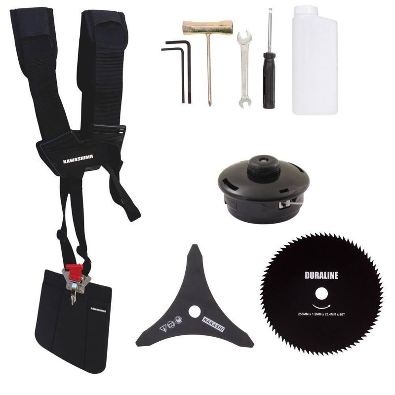Roçadeira Profissional Lateral Kawashima Kw52le à Gasolina 52c 2,5hp Com Faca 3 Pontas + Faca 80 Dentes Duraline 255mmRoçadeira Profissional Lateral Kawashima KW52-LE À Gasolina 2T 52c 2,5HP Com Lâmina 3 Pontas + Faca 80 Dentes 255mmMARCA KAWASHIMA - A ROÇADEIRA MAIS VENDIDA DO BRASIL- ROÇADEIRA POTENTE E ECONÔMICA- ALTA ROTAÇÃO E PERFORMANCE COM ECONOMIA- ASSISTÊNCIA TÉCNICA EM TODO TERRITÓRIO NACIONAL- PRODUTO COM 6 MESES DE GARANTIA- PEÇAS DE REPOSIÇÃO DE FÁCIL ACESSO- JÁ VEM MONTADA EM CAIXA ÚNICA PRONTA PARA O USO- EQUIPE DE PÓS-VENDAS A DISPOSIÇÃOA Roçadeira Kawashima KW52LE conta com motor 2 tempos à gasolina, 52 cilindradas e potência de 2,5HP. Projetada para facilitar o trabalho de roçada de capim, arbustos, pastagens, controle de pastos, trabalhos de jardinagem, limpeza e manutenção de grandes áreas verdes com sua utilização em sítios; fazendas e chácaras. Ideal também para manutenção e limpeza de vias públicas e rodovias. Desenvolvida com uma estrutura resistente e suporte do guidão reforçado, seus componentes possuem alta durabilidade. A vantagem da roçadeira é que pode ser usada em locais irregulares, morros, buracos, florestas, entre outro com dificuldade de acesso. Produto de alta qualidade, desempenho e durabilidade.ESPECIFICAÇÕES TÉCNICAS:-Modelo: KW52-LE-Marca: Kawashima-Tipo: Lateral, com guidão-Diâmetro da haste: 28mm-Eixo cardã (diâmetro x estria): 8 x 9-Motor: Kawashima M-5200E-Tipo do motor: 2 tempos, gasolina-Cilindradas: 52cc-Potência: 2,5HP-Tipo do carburador: Diafragma, com regulagem-Combustível: Gasolina e Óleo 2T (25:1)-Capacidade do tanque de combustível: 1,20L-Peso: 9Kg-Diâmetro de encaixe da lâmina: 1'' (25,4mm)EXTRA: DISCO DE CORTE 80 DENTES - DIÂM. 255MM X 25,4 MM (1) + Anel Redutor Para 20MM; Espessura 1,5MMO DISCO DE CORTE 80 Dentes acompanha um anel de redução que pode ser utiizada para roçadeiras de furo 20mm ou 25mm, sendo feita em aço cromo vanádio que garante mais segurança, desempenho e durabilidade. É uma lâmina balanceada, fazendo com que haja menor vibração, corte contínuo e suave, com mais conforto ao operador e mais longevidade para a roçadeira. Possui maior rendimento no trabalho e não precisa ser afiada antes do uso. É um disco multiuso pois pode ser aplicado para diferentes trabalhos, tendo em vista que pode serrar madeiras até 10cm, dentre elas esse modelo corta: Arbustos, Pequenas Árvores, Capim Grosso, Capim Elefante, Capim Guanxuma, Capim Annoni, Vassourinha, Bambu, Cana de Açúcar , Mato Alto, Capim Napier, Capim Sapê, Touceiras entre outros.ESPECIFICAÇÕES TÉCNICAS:- Tipo de Lâmina: Circular- Quantidade de Dentes: 80- Diâmetro: 255mm- Furo: 25mm Com Redutor Para 20mm- Espessura: 1,5mmITENS INCLUSOS:-01: Lâmina 3 Pontas;-01: Lâmina 80 Pontas;-01: Carretel de fio de nylon;-01: Cinto de sustentação duplo almofadado;-01: Misturador de combustível;-01: Kit de ferramentas;-01: Manual de Instruções; Marca: Kawashima | Com sistema antivibração: Não | Modelo: KW52LE80D255MM | Motivo de GTIN vazio: O produto é um kit ou pack | Capacidade do tanque de Óleo: N/A | Tipo de guiador: Aberto | Fonte do produto: N/A | Com regulação de guiador: Sim | Sistema de partida: Manual | Comprimento total: 188cm | Com guarda de segurança: Sim | Capacidade do tanque de combustível: 1,2L | MPN: 84678900 | Diâmetro de corte do disco de corte: 255mm | Largura total: 45cm | Tempos do motor: 2 | Eixo de transmissão: Reto | Peso: 12Kg | Tipos de máquinas: Roçadeira | Cilindrada: 52cc | Tipo de eixo da máquina: Reto | Diâmetro de corte da tanza: 255mm | Sistemas de corte: Lâmina & Nylon | SKU: KW52LE80D255MM | Acessórios incluídos: Faca 3 pontas, Cinto Duplo e Kit Ferramentas | Condição do item: Novo | Código universal de produto: 0703878013003 | É kit: Sim | Potência do motor: 2,5HP | Selo SEC: N/A