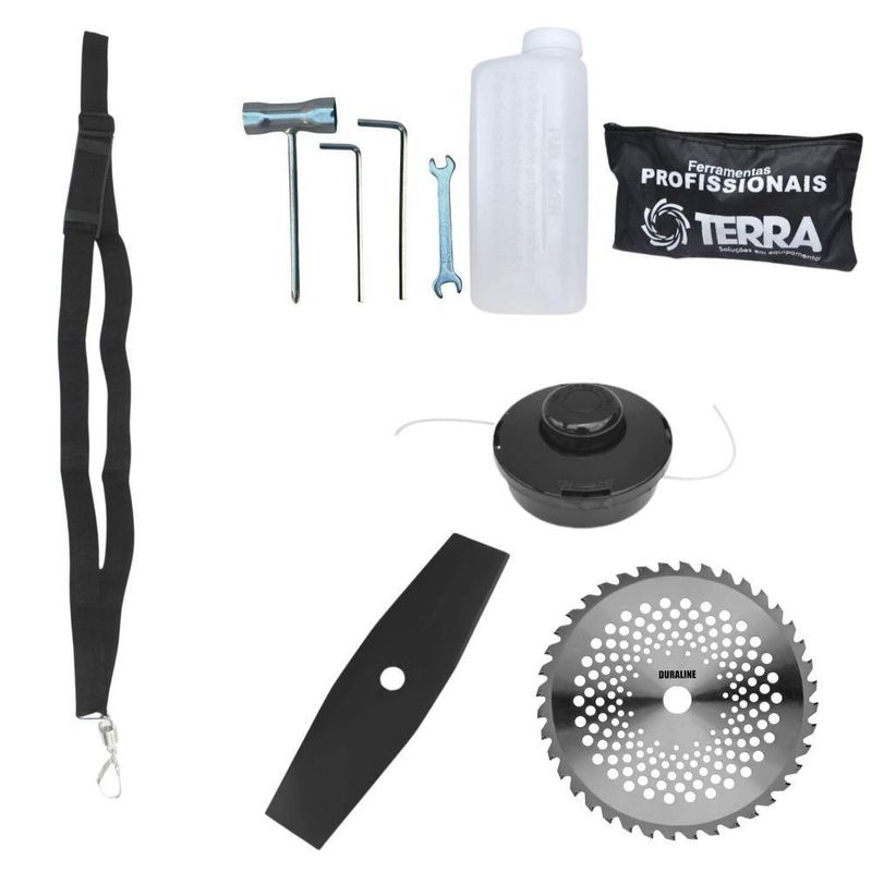 Roçadeira Profissional Lateral Terra Grhb430 á Gasolina 43cc 2t 1,7hp + Faca 40 Dentes Duraline 255mm 2mm - 2552540gcjbRoçadeira Profissional Lateral Terra GRHB-430 Bipartida À Gasolina 2 Tempos 43cc 1,7HP + Faca 40 PontasMARCA TERRA - A ROÇADEIRA MAIS VENDIDA DO BRASIL- ROÇADEIRA POTENTE E ECONÔMICA- ALTA ROTAÇÃO E PERFORMANCE COM ECONOMIA- ASSISTÊNCIA TÉCNICA EM TODO TERRITÓRIO NACIONAL- PRODUTO COM GARANTIA OFICIAL TERRA EM TODO BRASIL- PEÇAS DE REPOSIÇÃO DE FÁCIL ACESSO- EQUIPE DE PÓS-VENDAS A DISPOSIÇÃOA Roçadeira Profissional GRHB-430 com haste Bipartida, é o mais novo modelo do mercado, trazendo inovação com seu novo eixo bipartido, podendo ser desmontada, facilitando o transporte e acomodação do produto, com motor 2 tempos à gasolina, 43 cilindradas e potência de 1,7 HP. Possui partida leve, com sistema manual, auto-retrátil, e com punhos ergonômicos de fácil aceleração e equipada com carburador universal BIGDINT de maior potência e economia.A Roçadeira Terra GRHB-430 Possui ótima relação peso-potência e o seu grande diferencial é o eixo bipartido, que permite ser facilmente transportada em pequenos espaços como porta malas de carros, bagageiro de motocicletas e entre outros. É uma máquina de fácil montagem, com apenas um clique e o encaixe da junção, ela já está pronta para o uso. Conta com um sistema de amortecimento de alto desempenho que isola o motor da transmissão, reduzindo efetivamente os níveis de vibração.Projetada para facilitar o trabalho de roçada de capim, arbustos, pastagens, vegetação mais densa, limpeza e manutenção de grandes áreas verdes com sua utilização em sítios; fazendas e chácaras. Ideal também para manutenção e limpeza de vias públicas e rodovias. Desenvolvida com uma estrutura resistente e de fácil montagem e desmontagem do eixo, seus componentes possuem alta durabilidade. A vantagem da roçadeira, é que pode ser usada em locais irregulares, morros, buracos, florestas, entre outro com dificuldade de acesso.Operador, instrução recomendada para a utilização da máquina: Verifique a montagem e estado dos componentes da roçadeira; Assegure-se de estar utilizando todos os equipamentos de segurança; Leia o manual para saber como dar a partida em uma roçadeira; Segure a roçadeira com ambas as mãos durante a operação; Mantenha todas as partes de seu corpo longe da roçadeira durante sua operação; Sempre desligue o motor da roçadeira antes de deixá-la desassistida; Transporte sempre a roçadeira com o motor desligado; Proceda com a manutenção e limpeza da roçadeira. Há cuidados básicos que devem ser levados em conta para prolongar a vida útil de cada equipamento, dessa forma, além de manter o bom funcionamento você pode prevenir futuras falhas. Lembrando que se não cumprir as instruções de segurança pode resultar em lesões graves.ESPECIFICAÇÕES TÉCNICAS:- Tipo: Roçadeira lateral, com guidão bipartido- Modelo: GRHB430- Marca: Terra- Motor: À Gasolina, 2 tempos- Potência: 1,7 HP- Cilindradas: 43cc- Rotação: 12.000 RPM- Ignição: Eletrônica- Partida: Manual Auto-retrátil- Carburador: Diafragma com Regulagem- Embreagem: Centrifuga em alumínio fundido- Capacidade do tanque de combustível: 1200ml- Autonomia: Aprox. 60min- Eixo Cardã: Eixo Bipartido de 8mm x 9 estrias- Tubo do Eixo Cardã: Tubo de Alumínio 26mm - 153cm- Guidão: Bi-Partido fixado com suportes parafusados- Combustível: Gasolina com Óleo 2 tempos, proporção 25:1- Carretel: Automático, libera o fio com um toque no chão- Peso: 9,50 kgEXTRA: DISCO DE CORTE 40 DENTES VIDEA - DIÂM. 255MM X 25,4 MM (1) + Anel Redutor Para 20MM; Espessura 1,3MMO DISCO DE CORTE 40 Dentes de Vídea acompanha um anel de redução, ou seja, pode ser utiizada para roçadeiras de furo 20mm ou 25mm além de possui pintura feita por Cataforese a qual é mais resistente à corrosão. Seus dentes de vídea soldados à laser possuem encaixe especial, garantindo mais segurança, desempenho e durabilidade, as lâminas são balanceadas com menor vibração, corte contínuo e suave, com mais conforto ao operador e mais longevidade para a roçadeira.Pode ser aplicado para diferentes trabalhos, tendo em vista que pode serrar madeiras até 10cm, dentre elas esse modelo corta: Arbustos, Pequenas Árvores, Capim Grosso, Capim Elefante, Capim Guanxuma, Capim Annoni, Vassourinha, Bambu, Cana de Açúcar, Mato Alto, Capim Napier, Capim Sapê, Touceiras entre outros.ESPECIFICAÇÕES TÉCNICAS:- Tipo de Lâmina: Circular Vídea- Quantidade de Dentes: 40- Diâmetro: 255mm- Furo: 25mm (1'') Com Anel Redutor Para 20mm- Espessura: 2mmITENS INCLUSOS:- 01: Roçadeira GRHB430;- 01: Carretel com Nylon;- 01: Lâmina 2 pontas;- 01: Lâmina 40 pontas;- 01: Cinto;- 01: Misturador de combustível;- 01: Kit ferramentas de manutenção;- 01: Manual do Proprietário; Marca: Terra | Com sistema antivibração: Não | Modelo: GRHB43040D255MM | Motivo de GTIN vazio: O produto é um kit ou pack | Capacidade do tanque de Óleo: N/A | Tipo de guiador: Aberto | Fonte do produto: N/A | Com regulação de guiador: Sim | Sistema de partida: Manual | Comprimento total: 188cm | Com guarda de segurança: Sim | MPN: 84678900 | Capacidade do tanque de combustível: 1,0L | Diâmetro de corte do disco de corte: 255mm | Largura total: 40cm | Tempos do motor: 2 | Eixo de transmissão: Reto | Peso: 11kg | Tipos de máquinas: Roçadeira | Cilindrada: 43cc | Tipo de eixo da máquina: Reto | Diâmetro de corte da tanza: 255mm | Sistemas de corte: Faca e Carretel de Nylon | SKU: GRHB43040D255MM | Acessórios incluídos: Kit ferramentas, cinto de sustentação, misturador de combustível | Condição do item: Novo | Código universal de produto: 0703878011009 | É kit: Não | Potência do motor: 1,7HP | Selo SEC: N/A
