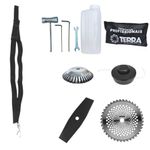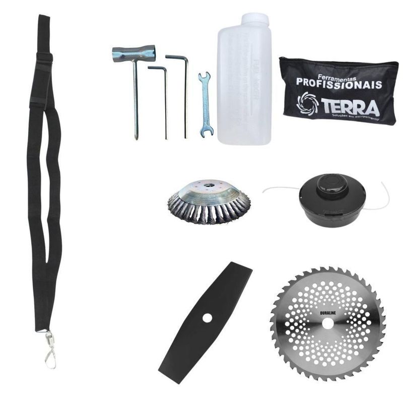 Roçadeira Profissional Lateral Terra Grhb430 á Gasolina 43cc 2t 1,7hp + Faca 40 Dentes Duraline 255mm 2mm + Escova RotaRoçadeira Profissional Lateral Terra GRHB-430 Bipartida À Gasolina 2 Tempos 43cc 1,7HP + Faca 40 Pontas + Escova Rotativa 38 CerdasMARCA TERRA - A ROÇADEIRA MAIS VENDIDA DO BRASIL- ROÇADEIRA POTENTE E ECONÔMICA- ALTA ROTAÇÃO E PERFORMANCE COM ECONOMIA- ASSISTÊNCIA TÉCNICA EM TODO TERRITÓRIO NACIONAL- PRODUTO COM GARANTIA OFICIAL TERRA EM TODO BRASIL- PEÇAS DE REPOSIÇÃO DE FÁCIL ACESSO- EQUIPE DE PÓS-VENDAS A DISPOSIÇÃOA Roçadeira Profissional GRHB-430 com haste Bipartida, é o mais novo modelo do mercado, trazendo inovação com seu novo eixo bipartido, podendo ser desmontada, facilitando o transporte e acomodação do produto, com motor 2 tempos à gasolina, 43 cilindradas e potência de 1,7 HP. Possui partida leve, com sistema manual, auto-retrátil, e com punhos ergonômicos de fácil aceleração e equipada com carburador universal BIGDINT de maior potência e economia.A Roçadeira Terra GRHB-430 Possui ótima relação peso-potência e o seu grande diferencial é o eixo bipartido, que permite ser facilmente transportada em pequenos espaços como porta malas de carros, bagageiro de motocicletas e entre outros. É uma máquina de fácil montagem, com apenas um clique e o encaixe da junção, ela já está pronta para o uso. Conta com um sistema de amortecimento de alto desempenho que isola o motor da transmissão, reduzindo efetivamente os níveis de vibração. Seu guidão com alças angulares, foi especialmente projetado para proporcionar uma experiência ergonômica e confortável.ESPECIFICAÇÕES TÉCNICAS:- Tipo: Roçadeira lateral, com guidão bipartido- Modelo: GRHB430- Marca: Terra- Motor: À Gasolina, 2 tempos- Potência: 1,7 HP- Cilindradas: 43cc- Rotação: 12.000 RPM- Ignição: Eletrônica- Partida: Manual Auto-retrátil- Carburador: Diafragma com Regulagem- Embreagem: Centrifuga em alumínio fundido- Capacidade do tanque de combustível: 1200ml- Autonomia: Aprox. 60min- Eixo Cardã: Eixo Bipartido de 8mm x 9 estrias- Tubo do Eixo Cardã: Tubo de Alumínio 26mm - 153cm- Guidão: Bi-Partido fixado com suportes parafusados- Combustível: Gasolina com Óleo 2 tempos, proporção 25:1- Carretel: Automático, libera o fio com um toque no chão- Peso: 9,50 kgEXTRA: DISCO DE CORTE 40 DENTES VIDEA - DIÂM. 255MM X 25,4 MM (1) + Anel Redutor Para 20MM; Espessura 1,3MMPode ser aplicado para diferentes trabalhos, tendo em vista que pode serrar madeiras até 10cm, dentre elas esse modelo corta: Arbustos, Pequenas Árvores, Capim Grosso, Capim Elefante, Capim Guanxuma, Capim Annoni, Vassourinha, Bambu, Cana de Açúcar, Mato Alto, Capim Napier, Capim Sapê, Touceiras entre outros.ESPECIFICAÇÕES TÉCNICAS:- Tipo de Lâmina: Circular Vídea- Quantidade de Dentes: 40- Diâmetro: 255mm- Furo: 25mm (1'') Com Anel Redutor Para 20mm- Espessura: 2mmEXTRA: ESCOVA DE AÇO ROTATIVA 200mm; Furo: 25,4 MM (1'')+ Anel Redutor Para 20MM; Espessura 2,70MMA Escova pode ser aplicada para diferentes trabalhos, dentre elas: Limpeza de Pavers, Limpeza de Calçadas, Limpeza de concreto, Limpeza de Pavimentos, Remoção de musgos e Remoção de ervas daninhasESPECIFICAÇÕES TÉCNICAS:- Tipo de Escova: Rotativa com cerdas em aço- Quantidade de Cerdas: 38- Diâmetro: 200mm- Furo: 25mm Com Redutor Para 20mm- Espessura: 50mmITENS INCLUSOS:- 01: Roçadeira GRHB430;- 01: Carretel com Nylon;- 01: Lâmina 2 pontas;- 01: Lâmina 40 pontas;- 01: Escova Rotativa de Aço- 01: Cinto;- 01: Misturador de combustível;- 01: Kit ferramentas de manutenção;- 01: Manual do Proprietário; Marca: Terra | Com sistema antivibração: Não | Modelo: GRHB43040D38C | Motivo de GTIN vazio: O produto é um kit ou pack | Capacidade do tanque de Óleo: N/A | Tipo de guiador: Aberto | Fonte do produto: N/A | Com regulação de guiador: Sim | Sistema de partida: Manual | Comprimento total: 188cm | Com guarda de segurança: Sim | Capacidade do tanque de combustível: 1,0L | MPN: 84678900 | Diâmetro de corte do disco de corte: 330mm | Largura total: 40cm | Tempos do motor: 2 | Eixo de transmissão: Reto | Peso: 11kg | Tipos de máquinas: Roçadeira | Cilindrada: 43cc | Tipo de eixo da máquina: Reto | Diâmetro de corte da tanza: 330mm | Sistemas de corte: Faca e Carretel de Nylon | SKU: GRHB43040D38C | Acessórios incluídos: Kit ferramentas, cinto de sustentação, misturador de combustível | Condição do item: Novo | Código universal de produto: 0703878011054 | É kit: Sim | Potência do motor: 1,7HP | Selo SEC: N/A