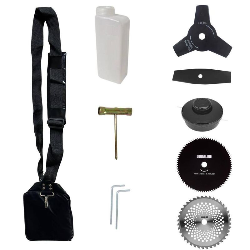 Roçadeira Tbc43-h 43cc Com Carretel + Facas 2p 3p 40d E 80dRoçadeira Profissional À Gasolina Toyama TBC43H 42,7cc 1,7HP 12.000rpm 2T + Faca 2 Pontas 330mm 2,7mm + Faca 40 Dentes 255mm 2mm + Faca 80 Dentes 255mm 2mm- MARCA TOYAMA - A ROÇADEIRA MAIS VENDIDA DO BRASIL- A ROÇADEIRA MAIS POTENTE E ECONÔMICA DO SEGMENTO- ASSISTÊNCIA TÉCNICA EM TODO TERRITÓRIO NACIONAL- PRODUTO COM GARANTIA OFICIAL TOYAMA EM TODO BRASIL- ALTA ROTAÇÃO E PERFORMANCE COM ECONOMIA- SISTEMA DE PARTIDA FÁCIL- PEÇAS DE REPOSIÇÃO DE FÁCIL ACESSO- EXTRA LÂMINA 2 PONTAS- EXTRA LÂMINA 40 DENTES- EQUIPE DE PÓS-VENDAS A DISPOSIÇÃOA Roçadeira á Gasolina Toyama TBC43H com motor 2 tempos é ideal para corte ou manutenção de gramados, jardins e vegetação em geral, é adequada para uso frequente, com partida fácil, oferecendo muita força e praticidade ao operador. A vantagem da roçadeira é que pode ser usada em locais irregulares, morros, buracos, florestas, entre outro com dificuldade de acesso. Produto de alta qualidade, desempenho e durabilidade.É uma roçadeira adpatável que pode se tornar multifuncional, podendo ser adaptado diversos modelos de acessórios, pois possui tubo de encaixe universal 26mm, e encaixe 25,4mm (1'') para lâminas e facas, ampliando ainda a sua diversidade de cortes. Realizando o trabalho de forma ágil e confortável, com cinto duplo almofadado que acompanha o equipamento, proporcionando maior conforto, ergonomia e segurança ao operador.Com guidão ergonômico lateral, permite um alcance amplo e maior mobilidade, capaz de aumentar a produtividade diária. Possui motor 2 tempos á gasolina, de 42,7 Cilindradas, 12.000 de rotação 1,7HP de potência que proporcionam maior performance e economia na operação. Seu conjunto de acessórios inclui kit de ferramentas, cinto de suporte almofadado, carretel de nylon e lâmina de corte 3 pontas.ESPECIFICAÇÕES TÉCNICAS:- Modelo: Roçadeira Lateral- Código: TBC43H- Marca: Toyama- Tipo do Guidão: Bicicleta com suportes parafusados- Refrigeração: Refrigerado a Ar- Cilindros: Monocilíndrico- Motor: 2 tempos- Sistema de Partida: Manual Retrátil- Cilindrada: 43cc- Potência máxima: 1,7HP- Rotação máxima: 12.000rpm- Capacidade do tanque do combustível: 1100ml (1,1L)- Combustível: Gasolina com Óleo 2 tempos- Tubo do eixo cardã: Tubo Inteiriço de 26mm - 8x9 estrias- Dimensões do produto: 188cm x 30cm x 30cm- Peso do produto montado: 5,800kgEXTRA: LÂMINA 2 PONTASÉ uma Faca Multiuso de 2 pontas que pode ser aplicada para diferentes trabalhos, possui material reforçado que é ideal para trabalhos pesados, podendo cortar os seguintes capins: Capim Grosso, Capim Elefante, Guanxuma, Annoni, Vassourinha, Capim Napier, Capim Sapê e entre outras variantes de capins.ESPECIFICAÇÕES TÉCNICAS:- Tipo de Lâmina: Facão- Quantidade de Pontas: 2- Diâmetro: 330mm- Furo: 25mm (1'') Com Anel Redutor Para 20mm- Espessura: 2,7mmEXTRA: DISCO DE CORTE 40 DENTES VIDEAPode ser aplicado para diferentes trabalhos, tendo em vista que pode serrar madeiras até 10cm, dentre elas esse modelo corta: Arbustos, Pequenas Árvores, Capim Grosso, Capim Elefante, Capim Guanxuma, Capim Annoni, Vassourinha, Bambu, Cana de Açúcar, Mato Alto, Capim Napier, Capim Sapê, Touceiras entre outros.ESPECIFICAÇÕES TÉCNICAS:- Tipo de Lâmina: Circular Vídea- Quantidade de Dentes: 40- Diâmetro: 255mm- Furo: 25mm (1'') Com Anel Redutor Para 20mm- Espessura: 2mmEXTRA: DISCO DE CORTE 80 DENTESPode ser aplicado para diferentes trabalhos, tendo em vista que pode serrar madeiras até 10cm, dentre elas esse modelo corta: Arbustos, Pequenas Árvores, Capim Grosso, Capim Elefante, Capim Guanxuma, Capim Annoni, Vassourinha, Bambu, Cana de Açúcar, Mato Alto, Capim Napier, Capim Sapê, Touceiras entre outros.ESPECIFICAÇÕES TÉCNICAS:- Tipo de Lâmina: Circular- Quantidade de Dentes: 80- Diâmetro: 255mm- Furo: 25mm (1'') Com Anel Redutor Para 20mm- Espessura: 1,5mmITENS INCLUSOS:- 01: Roçadeira com motor;- 01: Lâmina 3 pontas;- 01: Lâmina 2 pontas;- 01: Lâmina 40 dentes;- 01: Lâmina 80 dentes;- 01: Carretel de Nylon;- 01: Misturador de combustível;- 01: Cinto de sustentação almofadado;- 01: Kit de Ferramentas;- 01: Manual do Produto; Marca: Toyama | Com sistema antivibração: Não | Selo SEC: N/A | Modelo: VAR05TBC43H2P40D80D | Altura da embalagem do vendor: 180cm | Motivo de GTIN vazio: O produto é um kit ou pack | Capacidade do tanque de Óleo: N/A | Fonte do produto: N/A | Tipo de guiador: Aberto | Com regulação de guiador: Sim | Sistema de partida: Manual | Comprimento total: 180cm | Com guarda de segurança: Sim | Capacidade do tanque de combustível: 1100ml | MPN: 84678900 | Diâmetro de corte do disco de corte: 255mm | Largura total: 50cm | Tempos do motor: 2 | Eixo de transmissão: Rígido | Peso: 10Kg | Largura da embalagem do vendor: 50cm | Tipos de máquinas: Roçadeira | Cilindrada: 43cc | Tipo de eixo da máquina: Reto | Peso da embalagem do vendor: 11Kg | Diâmetro de corte da tanza: 255mm | Sistemas de corte: Lâmina e Fio de Nylon | Tipo da embalagem do vendor: Sem embalagem adicional | SKU: VAR05TBC43H2P40D80D | Acessórios incluídos: Lâmina, Carretel de Nylon, Kit de chaves, Misturador de Combustível e Cinto | Condição do item: Novo | Código universal de produto: 0703878057540 | Comprimento da embalagem do vendor: 180cm | É kit: Sim