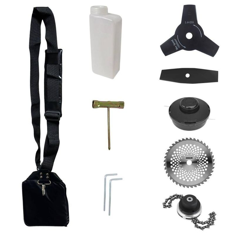 Roçadeira Tbc43h Com Facas 2p, 3p, 40d, Trimmer + CarretelRoçadeira Profissional À Gasolina Toyama TBC43H 42,7cc 1,7HP 12.000rpm 2T + Faca 2 Pontas 330mm 2,7mm + Faca 40 Dentes 255mm 2mm + Trimmer- MARCA TOYAMA - A ROÇADEIRA MAIS VENDIDA DO BRASIL- A ROÇADEIRA MAIS POTENTE E ECONÔMICA DO SEGMENTO- ASSISTÊNCIA TÉCNICA EM TODO TERRITÓRIO NACIONAL- PRODUTO COM GARANTIA OFICIAL TOYAMA EM TODO BRASIL- ALTA ROTAÇÃO E PERFORMANCE COM ECONOMIA- SISTEMA DE PARTIDA FÁCIL- PEÇAS DE REPOSIÇÃO DE FÁCIL ACESSO- EQUIPE DE PÓS-VENDAS A DISPOSIÇÃOA Roçadeira á Gasolina Toyama TBC43H com motor 2 tempos é ideal para corte ou manutenção de gramados, jardins e vegetação em geral, é adequada para uso frequente, com partida fácil, oferecendo muita força e praticidade ao operador. A vantagem da roçadeira é que pode ser usada em locais irregulares, morros, buracos, florestas, entre outro com dificuldade de acesso. Produto de alta qualidade, desempenho e durabilidade.É uma roçadeira adpatável que pode se tornar multifuncional, podendo ser adaptado diversos modelos de acessórios, pois possui tubo de encaixe universal 26mm, e encaixe 25,4mm (1'') para lâminas e facas, ampliando ainda a sua diversidade de cortes. Realizando o trabalho de forma ágil e confortável, com cinto duplo almofadado que acompanha o equipamento, proporcionando maior conforto, ergonomia e segurança ao operador.Com guidão ergonômico lateral, permite um alcance amplo e maior mobilidade, capaz de aumentar a produtividade diária. Possui motor 2 tempos á gasolina, de 42,7 Cilindradas, 12.000 de rotação 1,7HP de potência que proporcionam maior performance e economia na operação. Seu conjunto de acessórios inclui kit de ferramentas, cinto de suporte almofadado, carretel de nylon e lâmina de corte 3 pontas.ESPECIFICAÇÕES TÉCNICAS:- Modelo: Roçadeira Lateral- Código: TBC43H- Marca: Toyama- Tipo do Guidão: Bicicleta com suportes parafusados- Refrigeração: Refrigerado a Ar- Cilindros: Monocilíndrico- Motor: 2 tempos- Sistema de Partida: Manual Retrátil- Cilindrada: 43cc- Potência máxima: 1,7HP- Rotação máxima: 12.000rpm- Capacidade do tanque do combustível: 1100ml (1,1L)- Combustível: Gasolina com Óleo 2 tempos- Tubo do eixo cardã: Tubo Inteiriço de 26mm - 8x9 estrias- Dimensões do produto: 188cm x 30cm x 30cm- Peso do produto montado: 5,800kgEXTRA: LÂMINA 2 PONTASÉ uma Faca Multiuso de 2 pontas que pode ser aplicada para diferentes trabalhos, possui material reforçado que é ideal para trabalhos pesados, podendo cortar os seguintes capins: Capim Grosso, Capim Elefante, Guanxuma, Annoni, Vassourinha, Capim Napier, Capim Sapê e entre outras variantes de capins.ESPECIFICAÇÕES TÉCNICAS:- Tipo de Lâmina: Facão- Quantidade de Pontas: 2- Diâmetro: 330mm- Furo: 25mm (1'') Com Anel Redutor Para 20mm- Espessura: 2,7mmEXTRA: DISCO DE CORTE 40 DENTES VIDEAPode ser aplicado para diferentes trabalhos, tendo em vista que pode serrar madeiras até 10cm, dentre elas esse modelo corta: Arbustos, Pequenas Árvores, Capim Grosso, Capim Elefante, Capim Guanxuma, Capim Annoni, Vassourinha, Bambu, Cana de Açúcar, Mato Alto, Capim Napier, Capim Sapê, Touceiras entre outros.ESPECIFICAÇÕES TÉCNICAS:- Tipo de Lâmina: Circular Vídea- Quantidade de Dentes: 40- Diâmetro: 255mm- Furo: 25mm (1'') Com Anel Redutor Para 20mm- Espessura: 2mmEXTRA: Trimmer Com Corrente de Motosserra:Dados Técnicos:- Diâmetro: 330mm- Furo: 25mm- Espessura: 60mm- Material: Lâminas corrente de motosserraITENS INCLUSOS:- 01: Roçadeira com motor;- 01: Lâmina 3 pontas;- 01: Lâmina 2 pontas;- 01: Lâmina 40 dentes;- 01: Trimmer- 01: Carretel de Nylon;- 01: Misturador de combustível;- 01: Cinto de sustentação almofadado;- 01: Kit de Ferramentas;- 01: Manual do Produto; Marca: Toyama | Com sistema antivibração: Não | Selo SEC: N/A | Modelo: VAR03TBC43H2P40DTM | Altura da embalagem do vendor: 180cm | Motivo de GTIN vazio: O produto é um kit ou pack | Capacidade do tanque de Óleo: N/A | Fonte do produto: N/A | Tipo de guiador: Aberto | Com regulação de guiador: Sim | Sistema de partida: Manual | Comprimento total: 180cm | Com guarda de segurança: Sim | Capacidade do tanque de combustível: 1100ml | MPN: 84678900 | Diâmetro de corte do disco de corte: 255mm | Largura total: 50cm | Tempos do motor: 2 | Eixo de transmissão: Rígido | Peso: 10Kg | Largura da embalagem do vendor: 50cm | Tipos de máquinas: Roçadeira | Cilindrada: 43cc | Tipo de eixo da máquina: Reto | Peso da embalagem do vendor: 11Kg | Diâmetro de corte da tanza: 255mm | Sistemas de corte: Lâmina e Fio de Nylon | Tipo da embalagem do vendor: Sem embalagem adicional | SKU: VAR03TBC43H2P40DTM | Acessórios incluídos: Lâmina, Carretel de Nylon, Kit de chaves, Misturador de Combustível e Cinto | Condição do item: Novo | Código universal de produto: 0703878069314 | Comprimento da embalagem do vendor: 180cm | É kit: Sim