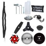 Roçadeira Terra Grhb430 43cc 2t 1,7hp + Faca 3 Pontas + Faca 40 Dentes + Faca 80 Dentes+ Faca 6 Pontas + Escova 38c + TRoçadeira Terra GRHB-430 Bipartida À Gasolina 2 Tempos 43cc 1,7HP + Faca 3 Pontas + Faca 40 Pontas + Faca 80 Pontas + Faca 6 Pontas + Escova 38C + Trimmer + Óleo TOYAMA LUB FG50 500ml 2T + Kit EPI CompletoATENÇÃO: A ROÇADEIRA É DA MARCA TERRA E ACOMPANHA UM Óleo 2T DA MARCA TOYAMAMARCA TERRA - A ROÇADEIRA MAIS VENDIDA DO BRASIL- ROÇADEIRA POTENTE E ECONÔMICA- ALTA ROTAÇÃO E PERFORMANCE COM ECONOMIA- ASSISTÊNCIA TÉCNICA EM TODO TERRITÓRIO NACIONAL- PRODUTO COM GARANTIA OFICIAL TERRA EM TODO BRASIL- PEÇAS DE REPOSIÇÃO DE FÁCIL ACESSO- EQUIPE DE PÓS-VENDAS A DISPOSIÇÃO- Óleo 2T TOYAMA LUB FG50 JASO FC Semissintético (1:50) - OBSERVE A INSTRUÇÃO DE MISTURA:Operador, instrução de mistura recomendada para a utilização da máquina com o Óleo 2T TOYAMA LUB (1:50) 500ml : Observe sempre a proporção da mistura específica deste Óleo, onde para cada 1 Litro de Gasolina utilizar 20ml do Óleo TOYAMA, ou para cada 500ml de Gasolina utilizar 10ml do Óleo TOYAMA. Além de manter o bom funcionamento, você pode prevenir futuras falhas e excesso de fumaça no cilindro de combustão.A Roçadeira Profissional GRHB-430 com haste Bipartida, é o mais novo modelo do mercado, trazendo inovação com seu novo eixo bipartido, podendo ser desmontada, facilitando o transporte e acomodação do produto, com motor 2 tempos à gasolina, 43 cilindradas e potência de 1,7 HP. Possui partida leve, com sistema manual, auto-retrátil, e com punhos ergonômicos de fácil aceleração e equipada com carburador universal BIGDINT de maior potência e economia.ESPECIFICAÇÕES TÉCNICAS:- Tipo: Roçadeira lateral, com guidão bipartido- Modelo: GRHB430- Marca: Terra- Motor: À Gasolina, 2 tempos- Potência: 1,7 HP- Cilindradas: 43cc- Rotação: 12.000 RPM- Ignição: Eletrônica- Partida: Manual Auto-retrátil- Carburador: Diafragma com Regulagem- Embreagem: Centrifuga em alumínio fundido- Capacidade do tanque de combustível: 1200ml- Autonomia: Aprox. 60min- Eixo Cardã: Eixo Bipartido de 8mm x 9 estrias- Tubo do Eixo Cardã: Tubo de Alumínio 26mm - 153cm- Guidão: Bi-Partido fixado com suportes parafusados- Combustível: Gasolina com Óleo 2 tempos, proporção 25:1- Carretel: Automático, libera o fio com um toque no chão- Peso: 9,50 kgEXTRA: LÂMINA 3 PONTAS - Tamanho: 255MM; Furo: 25,4 MM (1'')+ Anel Redutor Para 20MM; Espessura 2,9MMESPECIFICAÇÕES TÉCNICAS:- Tipo de Lâmina: 3 Lados- Quantidade de Pontas: 3- Diâmetro: 255mm- Furo: 25mm Com Redutor Para 20mm- Espessura: 2,9mmEXTRA: DISCO DE CORTE 40 DENTES VIDEA - DIÂM. 255MM X 25,4 MM (1) + Anel Redutor Para 20MM; Espessura 1,3MMESPECIFICAÇÕES TÉCNICAS:- Tipo de Lâmina: Circular Vídea- Quantidade de Dentes: 40- Diâmetro: 255mm- Furo: 25mm (1'') Com Anel Redutor Para 20mm- Espessura: 2mmEXTRA: DISCO DE CORTE 80 DENTES - DIÂM. 255MM X 25,4 MM (1) + Anel Redutor Para 20MM; Espessura 1,5MMESPECIFICAÇÕES TÉCNICAS:- Tipo de Lâmina: Circular- Quantidade de Dentes: 80- Diâmetro: 255mm- Furo: 25mm Com Redutor Para 20mm- Espessura: 1,5mmEXTRA: Lâminia 6 Pontas Terra:ESPECIFICAÇÕES TÉCNICAS:Dados Técnicos:- Diâmetro: 250mm- Furo: 25mm- Espessura: 0,5mm- Material: Lâminas de metalEXTRA: ESCOVA DE AÇO ROTATIVA 200mm; Furo: 25,4 MM (1'')+ Anel Redutor Para 20MM; Espessura 2,70MMESPECIFICAÇÕES TÉCNICAS:- Tipo de Escova: Rotativa com cerdas em aço- Quantidade de Cerdas: 38- Diâmetro: 200mm- Furo: 25mm Com Redutor Para 20mm- Espessura: 50mmEXTRA: Trimmer Com Corrente de Motosserra:Dados Técnicos:- Diâmetro: 330mm- Furo: 25mm- Espessura: 60mm- Material: Lâminas corrente de motosserraEXTRA: Kit de EPIs:Composto por:-1 Óculos, 1 Protetor Facial, 1 Protetor Auricular, 1 Perneira, 1 Bone Árabe e 1 Luva de Tecido.ITENS INCLUSOS:- 01: Roçadeira GRHB430;- 01: Carretel com Nylon;- 01: Lâmina 2 pontas;- 01: Lâmina 3 pontas;- 01: Lâmina 6 pontas- 01: Lâmina 40 pontas;- 01: Lâmina 80 pontas;- 01: Escova Rotativa de Aço;- 01: Trimmer;- 01: Óleo TOYAMA FG50 500ml 2T;- 01: Kit EPI;- 01: Cinto;- 01: Misturador de combustível;- 01: Kit ferramentas de manutenção;- 01: Manual do Proprietário; Marca: Terra | Com sistema antivibração: Não | Selo SEC: N/A | Modelo: VAR04GRHB43034080638TOTE | Motivo de GTIN vazio: O produto é um kit ou pack | Capacidade do tanque de Óleo: N/A | Fonte do produto: N/A | Tipo de guiador: Aberto | Com regulação de guiador: Sim | Sistema de partida: Manual | Comprimento total: 188cm | Com guarda de segurança: Sim | Capacidade do tanque de combustível: 1,2L | MPN: 84678900 | Diâmetro de corte do disco de corte: 255mm | Largura total: 40cm | Tempos do motor: 2 | Eixo de transmissão: Rígido | Peso: 12kg | Tipos de máquinas: Roçadeira | Potência do motor: 1,7HP | Cilindrada: 43cc | Tipo de eixo da máquina: Reto | Diâmetro de corte da tanza: 255mm | Sistemas de corte: Lâmina e Carretel de Nylon | SKU: VAR04GRHB43034080638TOTE | Acessórios incluídos: Kit ferramentas, cinto de sustentação, misturador de combustível | Condição do item: Novo | Código universal de produto: 0703363315773 | É kit: Sim