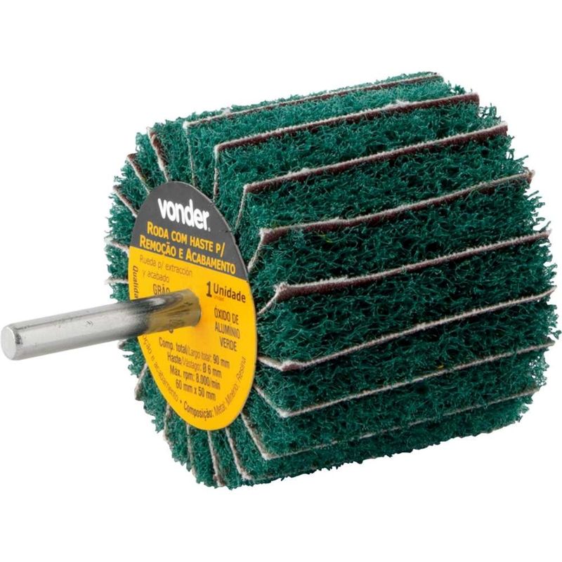 Roda Com Haste Remoção/acabamento 60x50mm G180 VonderDescubra a eficiência e qualidade da Roda com Haste Vonder, ideal para quem busca excelência em remoção e acabamento de superfícies metálicas. Este produto é perfeito para profissionais que trabalham com aço, aço inoxidável, ferro, latão, cobre e alumínio. Com a marca Vonder, reconhecida por sua durabilidade e inovação, você garante um trabalho de alta performance.A Roda com Haste Vonder é projetada para ser utilizada com retificadeiras retas, proporcionando um acabamento preciso e eficiente. O grão abrasivo de óxido de alumínio verde G180 oferece um excelente poder de remoção, enquanto mantém um acabamento de qualidade. Com um diâmetro externo de 60 mm e largura de 50 mm, esta roda é ideal para diversas aplicações industriais e artesanais.ESPECIFICAÇÕES TÉCNICAS:- Marca: Vonder- Modelo: 1270180600- Diâmetro externo da roda abrasiva: 60,0 mm- Largura da roda abrasiva: 50,0 mm- Comprimento total: 90 mm- Grão: G 180- Tipo de grão abrasivo: Óxido de alumínio Verde- Rotação máxima: 8.000/min- Diâmetro da haste da roda abrasiva: 6,0 mm- Massa aproximada: 0,060 kg- Código universal de produto: 7893946685607FUNÇÕES E CARACTERÍSTICAS:- Alta eficiência em remoção de material- Acabamento de qualidade em superfícies metálicas- Compatível com retificadeiras retasAPLICAÇÕES E DICAS DE USO:1. Utilize sempre com retificadeira reta para melhores resultados.2. Ideal para superfícies metálicas como aço, inox, ferro, latão, cobre e alumínio.3. Siga as instruções de segurança ao manusear ferramentas abrasivas.ITENS INCLUSOS:- 1 Roda com haste