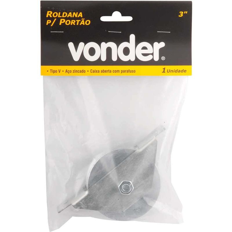 Roldana Para Portão 3", Tipo V, aço Zincado, Caixa Aberta, com Parafuso, Vonder OstenVonder - Conteúdo da embalagem: 1 Roldana para portão. Aplicação: Indicada para utilização em portões. Destaques: Produzida em aço 1020 com rolamento em aço cromo, conferindo maior resistência mecânica. Possui caixa aberta, deixando a peça mais próxima ao chão. A caixa aberta possui acabamento zincado, aumentando a proteção contra a oxidação. Para maior proteção do rolamento, é colocado um anel de aço 1020 sobreposto ao mesmo. A fixação das peças é feita através parafuso e porca. Referência: 3212300500 Garantia - E (CDC): Garantia legal: 90 dias Massa aproximada (peso): 0,65 kg Perfil da roldana para portão: Tipo "V" Acabamento da roldana para portão: Zincado Largura da roldana para portão: 19 mm Tipo da roldana para portão: Caixa aberta com parafuso e rolamento Diâmetro da roldana para portão: 3" Material da roldana: Aço Capacidade de carga por roldana: 225,0 kgf Medida C: 30,0 mm Medida D: 40,0 mm Destaques Comercial: Feita em aço 1020 com rolamento em aço cromo, caixa aberta zincada e anel protetor. Fixação por parafuso e porca. Aplicação Comercial: Indicada para utilização em portões. Características Gerais do Produto: Garantia: • 3 Meses