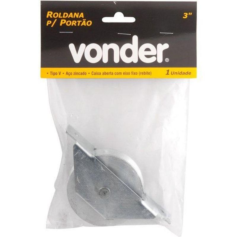 Roldana Portão 3 Tipo V Em Zincado Caixa Aberta Re VonderRoldana Para Portão 3 Tipo V Em Aço Zincado Caixa Aberta ReA roldana para portão da marca Vonder é a escolha ideal para quem busca durabilidade e eficiência. Produzida em aço 1020 com rolamento em aço cromo, esta roldana oferece resistência mecânica superior, garantindo um desempenho confiável e duradouro. O acabamento zincado da caixa aberta proporciona uma proteção extra contra a oxidação, aumentando a vida útil do produto. Além disso, o anel de aço 1020 sobreposto ao rolamento oferece proteção adicional, assegurando que a roldana funcione suavemente por mais tempo. Indicada para utilização em portões, esta roldana é compatível com diversos tipos de sistemas, como deslizantes e basculantes, e pode ser utilizada em portões de madeira ou metal. A fixação das peças é feita através de rebite, garantindo uma instalação segura e estável. Com um diâmetro de 3, a roldana é ideal para portões de médio porte, oferecendo um deslizamento suave e eficiente.ESPECIFICAÇÕES TÉCNICAS- Marca: Vonder- Código universal de produto: 7893946512248- Modelo: 7893946512248- Material da roldana: Aço 1020- Acabamento: Zincado- Diâmetro: 3- Tipo: Caixa aberta com eixo fixo (rebite)- Compatibilidade: Portões deslizantes e basculantesFUNÇÕES E CARACTERÍSTICAS- Alta resistência mecânica- Proteção contra oxidação- Instalação segura com rebite- Compatível com portões de madeira e metalINSTRUÇÕES DE USO1. Verifique se todos os componentes necessários para a instalação estão presentes.2. Posicione a roldana no local desejado no portão.3. Fixe a roldana utilizando rebites adequados.4. Teste o deslizamento do portão para garantir que a instalação foi bem-sucedida.5. Realize manutenções periódicas para garantir o melhor desempenho. Produto: Roldana