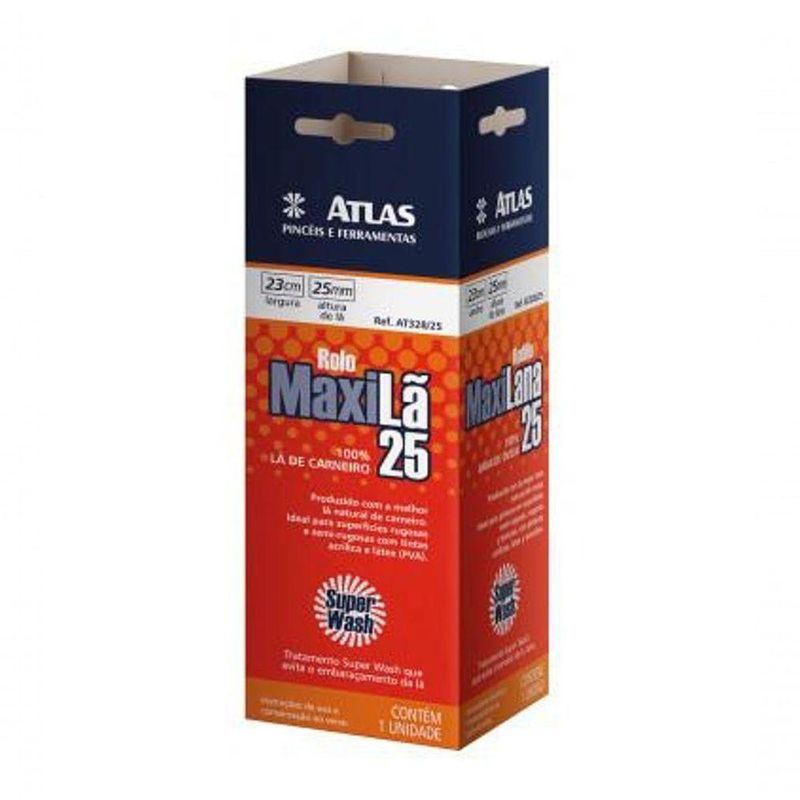 Rolo De Pintura 100% Lã 23cm - AtlasIdeal para pinturas em superfícies rugosas e semirrugosas com tinta acrílica PVA, látex e esmalte.Altura da Lã de 25 mm. Especificações Uso indicado Superfícies Rugosas e Semi Rugosas Peso 100 g Material Lã Natural Largura do Rolo 23 cm Altura 8 cm Largura 8 cm Comnto 23 cm Peso Bruto kg