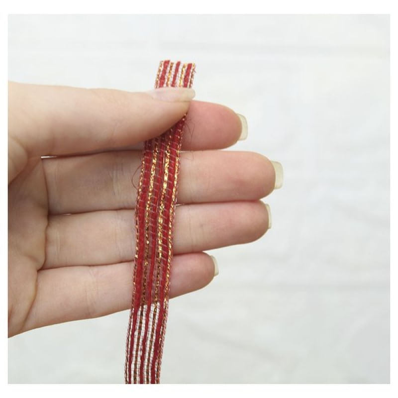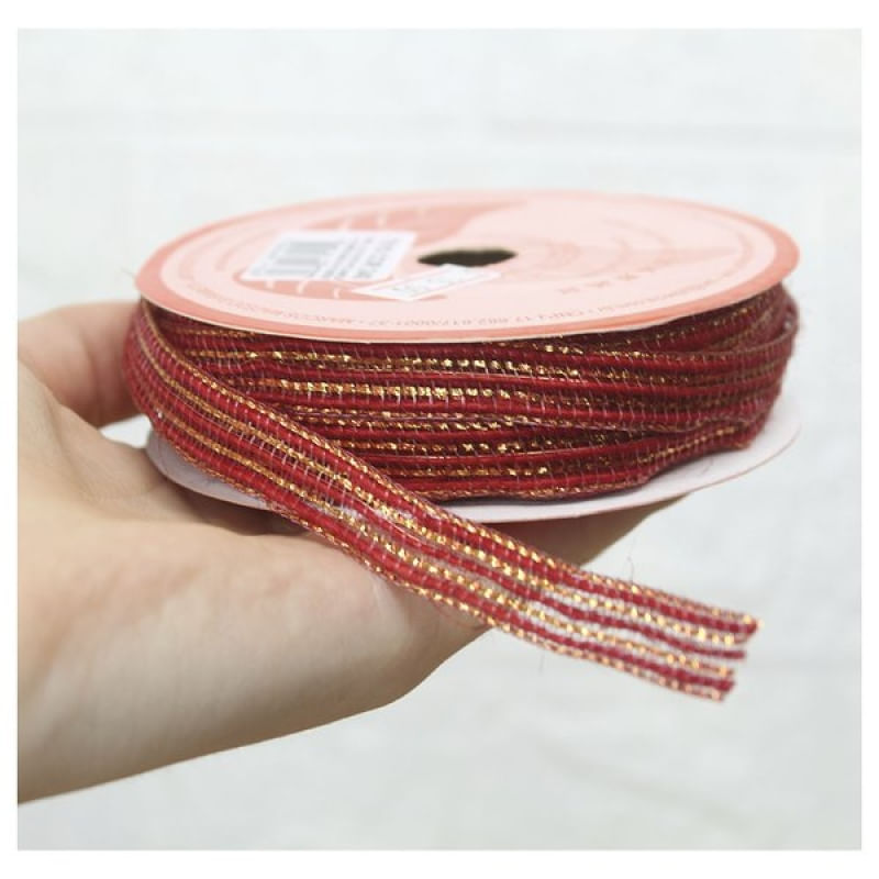 Rolo Fita De Juta Vermelho Natal Decoração Natalina 10mm x 10m - O Natal é tempo de celebrar o amor, comemorar a vida com novas esperanças, novos sonhos e também é a hora de deixar a casa mais bonita para receber a família nesta data tão importante. Você poderá realizar um Natal com toque de charme e bom gosto que contagiará seus convidados com o espírito natalino, deixando a sua casa decorada de uma forma diferente e apropriada para a data mais esperada do ano. Especificações: Uso: Decoração Natalina Material: 63% Juta, 27% Poliamida, 4% Fio metalizado. 6% Poliéster Tamanho: 10mm x 10metros. Contém: 1 unidade ROLO DE FITA. Características Gerais do Produto: • Material: Poliéster Garantia: • Garantia do site - 1 Mês