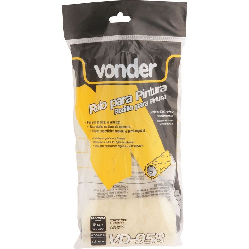 Conteúdo da embalagem1 Rolo para pinturaAplicações e dicas de usoIndicado para todos os tipos de tintas e vernizes. Ideal para superfícies rugosas e semirrugosas.Destaques e diferenciaisResistente a todos os tipos de solventes DETALHES TÉCNICOS Largura do rolo para pintura: 9,0 cm Material do rolo para pintura: Lã de carneiro Suporte do rolo para pintura: Com suporte metálico