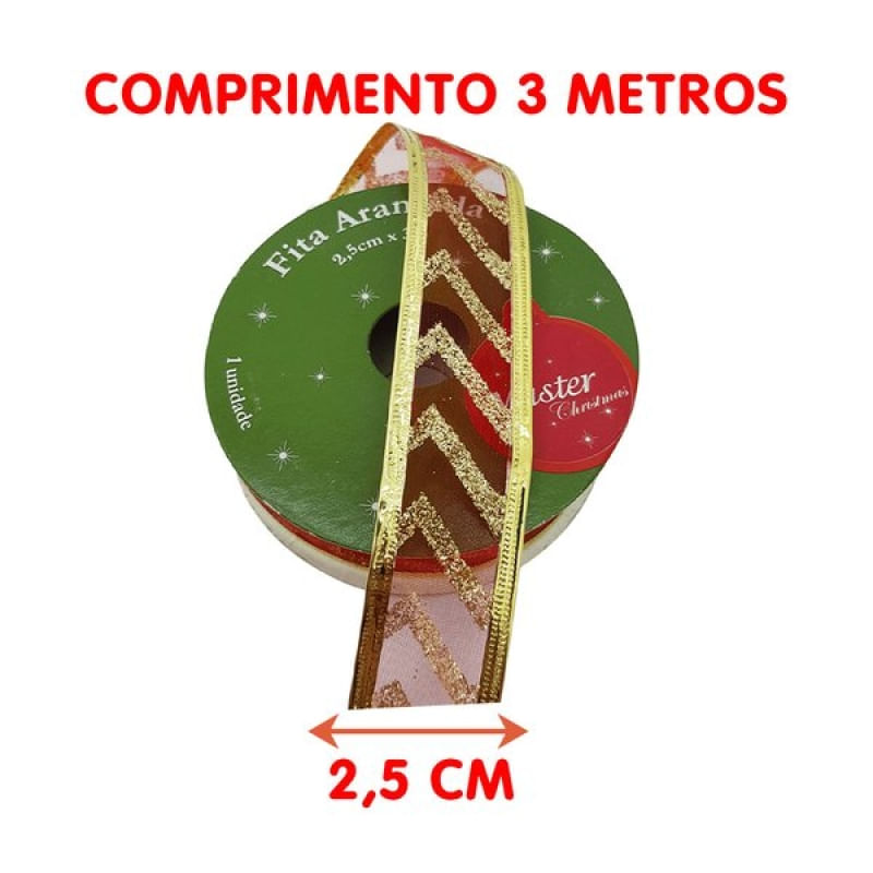 Rolos Fitas Aramada Enfeite Natal Gliter 2,5cm 3m Kit 4pçs - A Elegância Natural para Suas Criações! Transforme seus projetos de artesanato, decoração e embalagens com a autenticidade e charme rústico da Fita Metálica. Ideal para todas as suas necessidades criativas, nossa fita Aramada oferece uma combinação perfeita de durabilidade e estilo. Especificações: Cor: Vermelho Com Gliter Dourado; Material: 100% Poliéster; Medidas: Largura 2,5cm X Comprimento 3m; Conteúdo Da Embalagem: Kit 4 Rolos De Fitas Aramada Natalina De 2,5cm E 3m De Comprimento; Características Gerais do Produto: • Material: Poliéster • Modelo: Fita Aramada • Cor: Vermelho • Dimensões aproximadas: Largura 2,5cm X Comprimento 3m Garantia: • Garantia do site - 1 Mês