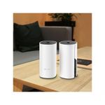 Roteador Wi-fi Deco Tp-link M4 Ac1200 Pack Com 2 PecasSistema Wi-Fi Mesh em Toda Casa - Elimine áreas de sombra de sinal de uma vez por todas! WIRELESS Padrões Wi-Fi 5IEEE 802.11ac/n/a 5 GHzIEEE 802.11n/b/g 2.4 GHzVelocidade de WiFi AC12005 GHz: 867 Mbps (802.11ac)2.4 GHz: 300 Mbps (802.11n) Alcance do sinal WiFi Casas de 3 a 5 quartos (pacote com 3)Tecnologia Mesh TP-LinkO backhaul Ethernet opcional trabalha em conjunto para conectar as unidades Deco para fornecer cobertura contínua 2 × Antenas (Internas)Múltiplas antenas formam uma matriz de aumento de sinal para cobrir mais direções e grandes áreas BeamformingConcentra a força do sinal wireless para clientes para expandir o alcance WiFi Capacidade WiFi MédioBanda DuplaDistribui os dispositivos para bandas diferentes para desempenho ideal MU-MIMOComunica-se simultaneamente com vários clientes MU-MIMO Modos de Operação:Modo RoteadorModo Access Point HARDWARE Processador: Qualcomm CPUPortas Ethernet:2× Portas Gigabit *Por Unidade DecoSuporta detecção-automática WAN/LAN BotõesBotão ResetAlimentação: 12 V ? 1.5 A SEGURANÇA Criptografia WiFi: WPA-PessoalWPA2-PessoalSegurança de Rede: Firewall SPI / Controle de AcessoRede para Visitantes:1 × Rede de Visitantes 5 GHz1 × Rede de Visitantes 2,4 GHz SOFTWARE Protocolos: IPv4IPv6Controle dos Pais: Filtragem de URL / Controle de TempoTipos de WAN: IP Dinâmico I.P....Sistema Wi-Fi Mesh em Toda Casa - Elimine áreas de sombra de sinal de uma vez por todas! WIRELESS Padrões Wi-Fi 5IEEE 802.11ac/n/a 5 GHzIEEE 802.11n/b/g 2.4 GHzVelocidade de WiFi AC12005 GHz: 867 Mbps (802.11ac)2.4 GHz: 300 Mbps (802.11n) Alcance do sinal WiFi Casas de 3 a 5 quartos (pacote com 3)Tecnologia Mesh TP-LinkO backhaul Ethernet opcional trabalha em conjunto para conectar as unidades Deco para fornecer cobertura contínua 2 × Antenas (Internas)Múltiplas antenas formam uma matriz de aumento de sinal para cobrir mais direções e grandes áreas BeamformingConcentra a força do sinal wireless para clientes para expandir o alcance WiFi Capacidade WiFi MédioBanda DuplaDistribui os dispositivos para bandas diferentes para desempenho ideal MU-MIMOComunica-se simultaneamente com vários clientes MU-MIMO Modos de Operação:Modo RoteadorModo Access Point HARDWARE Processador: Qualcomm CPUPortas Ethernet:2× Portas Gigabit *Por Unidade DecoSuporta detecção-automática WAN/LAN BotõesBotão ResetAlimentação: 12 V ? 1.5 A SEGURANÇA Criptografia WiFi: WPA-PessoalWPA2-PessoalSegurança de Rede: Firewall SPI / Controle de AcessoRede para Visitantes:1 × Rede de Visitantes 5 GHz1 × Rede de Visitantes 2,4 GHz SOFTWARE Protocolos: IPv4IPv6Controle dos Pais: Filtragem de URL / Controle de TempoTipos de WAN: IP Dinâmico I.P....