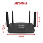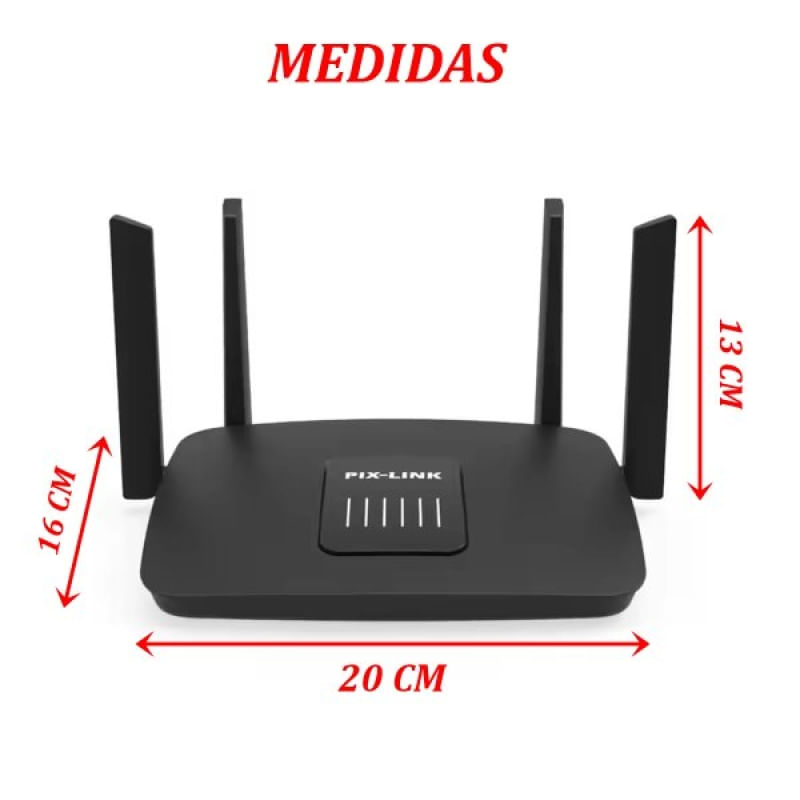 Roteador Wi-fi Wireless-AC 1200Mbps 5G 4 Antenas Pix-Link - Transforme sua conexão com o Roteador de Wi-Fi Ultra Rápido! Está cansado de uma internet lenta e instável? Apresentamos o Roteador de Wi-Fi Ultra Rápido, a solução definitiva para todos os seus problemas de conexão. O roteador é ideal para quem busca uma conexão Wi-Fi estável e de longo alcance, com capacidade para múltiplos dispositivos. Adequado para planos de internet de até 1 200 mega, Equipado com tecnologia inMesh, permite expansão da área de cobertura ao ser combinado com outros roteadores compatíveis. Proteja sua rede com as mais recentes tecnologias de criptografia. ESPECIFICAÇÕES: Cumpre Os Padrões de IEEE 802.11AC/B/G/N; 4 Antenas Externas; Suporat Roteador , Repetidor, Cliente e Modo de AP; O Controlador do Ponto de Acesso Sem Fio Acerela Até 1200 Mbps; Suporta As Criptografias de WPA / WPA2 e WPA-PSK / WPA2-PSK; CARACTERÍSTICAS TÉCINICAS: O roteador AC sem fio vem com o padrão Wi-Fi de próxima geração IEEE 802.11ac, 3 vezes mais rápido que as velocidades N sem fio e oferece uma taxa combinada de transferência de dados sem fio de até 1,2 Gbps. Com 300 Mbps na banda de 2,4 GHz e velocidades sem fio de 867 Mbps na banda cristalina de 5 GHz, o Roteador Wireless-AC é a escolha superior para streaming HD contínuo, jogos online e outras tarefas que exigem muita largura de banda; MEDIDAS: 13 cm X 20cm X 16cm; CONTEÚDO DA EMBALAGEM: 1 Adaptador Powerp; 1 Roteador Wi-fi Pix-Link; 1 Cabo De Rede; Características Gerais do Produto: • Material: Plástico; Componentes eletrônicos • Modelo: Roteador Wi-fi • Cor: Preto • Dimensões aproximadas: Altura 13cm X Largura 20cm X Comprimento 16cm Garantia: • Garantia contra avarias no transporte