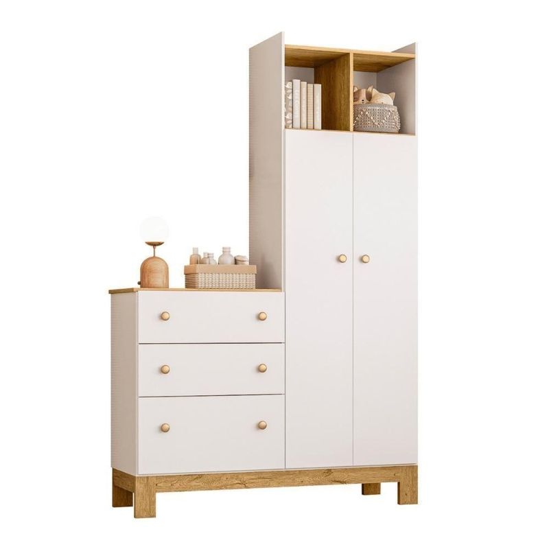 Roupeiro E Cômoda Infantil 2 Portas 3 Gavetas BrancoEste é o Guarda Roupa Pensado para quem precisa de otimização no espaço e deseja um móvel moderno, com beleza e funcionalidade.Possui nichos que podem ser utilizados para a decoração do quarto, além dos charmosos pés quadrados em MDF de 25mm.Dimensões do Produto:Altura: 190 cmLargura: 120,4 cmProfundidade: 42 cmInformações do Produto:Material: MDPPrateleira: Sim (4)Portas: Sim (2)Gavetas: Sim (3)Itens Inclusos:01 Guarda RoupaManual de MontagemKit completo para montagem e manual de instruçõesGarantia:3 meses contra defeito de fabricaçãoInformações Adicionais:- Fotos meramente ilustrativas do produto no ambiente.- Os objetos que ambientam as fotos não acompanham o produto;- Verificar descrição e tamanho do produto antes da compra.- Avaliar a mercadoria no ato do recebimento e recusar em caso de divergência ou avarias.- Mantenha as informações de contato e endereço de entrega atualizados para entrarmos em contato caso necessário.- Limpar com flanela ou pano macio seco, não utilizar produtos abrasivos, desengordurantes, álcool ou solvente. Não expor o produto diretamente à luz solar e à umidade.* Sugerimos a contratação de um montador profissional para a montagem do produto. Não nos responsabilizamos por avarias causadas no ato da montagem.* Não nos responsabilizamos pela montagem e desmontagem do produto no ato da entrega e devolução, assim como os custos gerados nestas situações.* A transportadora entregará o produto no andar térreo do endereço de entrega.* Não nos responsabilizamos por subir escadas, corredores e elevadores ou transporte por guincho em apartamentos. MODELO: Guarda Roupa Casal 6 Portas Lauana Ébano Rústico | ALTURA DO PRODUTO (CM): 190 | LARGURA PRODUTO COM EMBALAGEM (CM): 47.5 | PESO DO PRODUTO (KG): 52 | ALTURA DO PRODUTO COM EMBALAGEM (CM): 29.5 | MARCA: CASAH | COMPRIMENTO PRODUTO COM EMBALAGEM (CM): 208.5 | COMPRIMENTO DO PRODUTO (CM): 42 | CONTEÚDO DA EMBALAGEM: 1 Guarda Roupa | COR PREDOMINANTE: Marrom | CORES DO PRODUTO (FILTRO DE CORES): Marrom | MATERIAL PRINCIPAL: MDP | MATERIAL PARA FILTRO: MDP | ESTADO DE ORIGEM: PR | INSTRUÇÕES/CUIDADOS: Limpar com pano macio e seco, não utilizar produtos abrasivos. | PRODUTO PRECISA DE MONTAGEM?: Sim, a montagem é simples mas sugerimos a contratação do nosso serviço de montagem (para os CEPs em que o serviço está disponível) ou de algum profissional experiente de sua preferência | LARGURA DO PRODUTO (CM): 120,4 | PESO PRODUTO COM EMBALAGEM (KG): 126,4 Cor: Branco