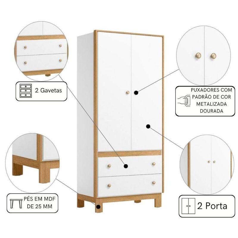 Roupeiro Infantil 2 Portas 2 Gavetas BrancoEste é o Guarda Roupa Pensado para quem precisa de otimização no espaço e deseja um móvel moderno, com beleza e funcionalidade.Possui detalhes emMDF e puxadores metalizados, adicionam um toque natural e elegante ao design atemporal da linha.Dimensões do Produto:Altura: 188,5 cmLargura: 84,6 cmProfundidade: 47 cmInformações do Produto:Material: MDP/MDFPrateleira: Sim (5)Portas: Sim (2)Gavetas: Sim (2)Itens Inclusos:01 Guarda RoupaManual de MontagemKit completo para montagem e manual de instruçõesGarantia:3 meses contra defeito de fabricaçãoInformações Adicionais:- Fotos meramente ilustrativas do produto no ambiente.- Os objetos que ambientam as fotos não acompanham o produto;- Verificar descrição e tamanho do produto antes da compra.- Avaliar a mercadoria no ato do recebimento e recusar em caso de divergência ou avarias.- Mantenha as informações de contato e endereço de entrega atualizados para entrarmos em contato caso necessário.- Limpar com flanela ou pano macio seco, não utilizar produtos abrasivos, desengordurantes, álcool ou solvente. Não expor o produto diretamente à luz solar e à umidade.* Sugerimos a contratação de um montador profissional para a montagem do produto. Não nos responsabilizamos por avarias causadas no ato da montagem.* Não nos responsabilizamos pela montagem e desmontagem do produto no ato da entrega e devolução, assim como os custos gerados nestas situações.* A transportadora entregará o produto no andar térreo do endereço de entrega.* Não nos responsabilizamos por subir escadas, corredores e elevadores ou transporte por guincho em apartamentos. CONTEÚDO DA EMBALAGEM: 1 Guarda Roupa | COR PREDOMINANTE: Marrom | CORES DO PRODUTO (FILTRO DE CORES): Marrom | MATERIAL PRINCIPAL: MDP | MATERIAL PARA FILTRO: MDP | ESTADO DE ORIGEM: PR | INSTRUÇÕES/CUIDADOS: Limpar com pano macio e seco, não utilizar produtos abrasivos. | PRODUTO PRECISA DE MONTAGEM?: Sim, a montagem é simples mas sugerimos a contratação do nosso serviço de montagem (para os CEPs em que o serviço está disponível) ou de algum profissional experiente de sua preferência | ALTURA DO PRODUTO (CM): 188,5 | LARGURA DO PRODUTO (CM): 84,6 | COMPRIMENTO DO PRODUTO (CM): 47 | PESO DO PRODUTO (KG): 57,5 | ALTURA DO PRODUTO COM EMBALAGEM (CM): 29.5 | LARGURA PRODUTO COM EMBALAGEM (CM): 47.5 | COMPRIMENTO PRODUTO COM EMBALAGEM (CM): 208.5 | PESO PRODUTO COM EMBALAGEM (KG): 126,4 | MODELO: Guarda Roupa Casal 6 Portas Lauana Ébano Rústico | MARCA: CASAH Cor: Branco