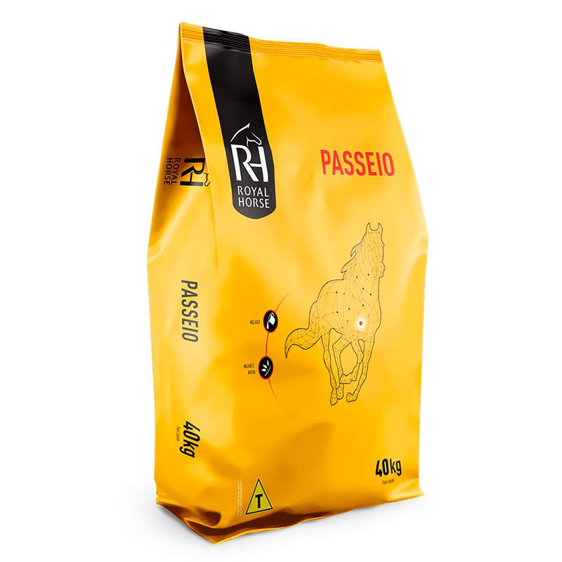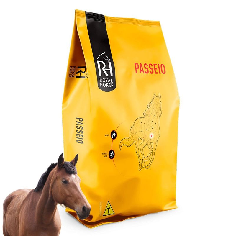 REVENDEDOR OFICIAL ROYAL HORSE - Garantia de procedência! Royal Horse Passeio - Esforço leve Royal Horse Passeio faz parte da linha de Lazer da Royal Horse, desenvolvida para atender cavalos de passeio, criação e trabalho leve, oferecendo energia e nutrientes essenciais para a manutenção da boa condição corporal. Com alta eficiência nutricional, promove a saúde do trato digestivo e fornece fontes seguras de energia, contribuindo para o bem-estar e a sustentação das funções vitais desses animais. Produto destinado a animais em manutenção e trabalho leve. - Fornece energia e nutrientes necessários à manutenção da boa condição corporal; - Melhor eficiência nutricional; - Promove a boa saúde do trato digestivo; - Oferece fontes de energia seguras para a sustentação de trabalhos leves a moderados. - Produto multicomponente com banho de melaço. Instruções de uso Fornecer de 0,5 a 1,2% do Peso Vivo por dia, divididos em refeições de no máximo 2kg cada. Valores Nutricionais PB (mín)%...........13 EE (mín)%............3 ED (kcal/kg)......3000 CÁLCIO (mín)%......1,8 FÓSFORO (mín)%.....0,5 Garantia do fabricante: 30 dias
