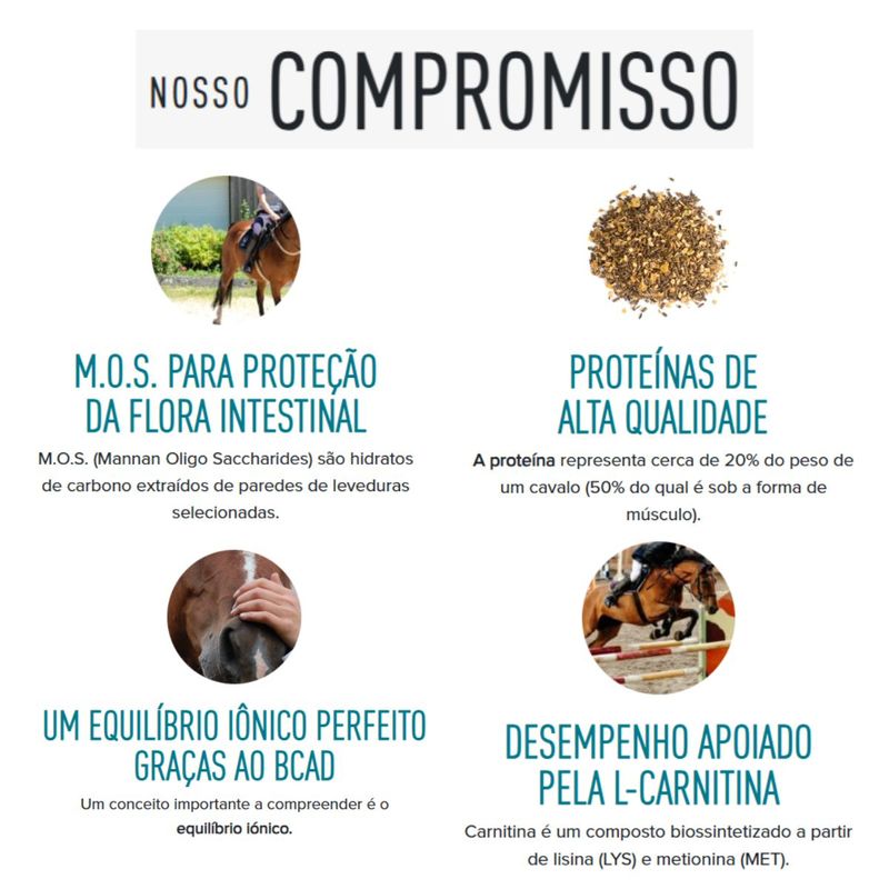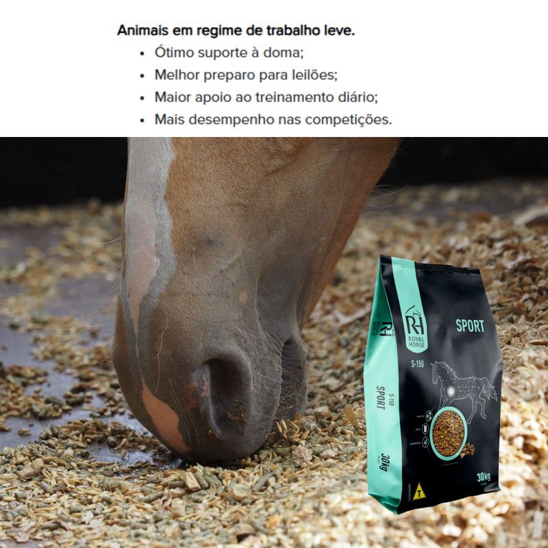 REVENDEDOR OFICIAL ROYAL HORSE - Garantia de procedência! Royal Horse Sport - Trabalho Moderado Seu cavalo merece vencer! A ROYAL HORSE desenvolve soluções nutricionais avançadas para apoiar o desempenho em todas as etapas da vida esportiva. Royal Horse Sport oferece excelente suporte à doma, melhor preparo para leilões, maior eficiência no treinamento diário e mais desempenho em competições. - Ótimo suporte à doma; - Melhor preparo para leilões; - Maior apoio ao treinamento diário; - Mais desempenho nas competições. Instruções de uso Fornecer um mínimo de 0,5 e máximo de 1,2% do Peso Vivo do animal por dia. Dividida a quantidade diária em 2 ou 3 refeições espaçadas durante o dia. Deixe sempre água limpa e fresca à disposição do seu cavalo. Valores Nutricionais PB (mín)%..................12 EE (mín)%....................4 ED (kcal/kg)............3350 CÁLCIO (mín)%.........1,4 FÓSFORO (mín)%......0,6 LISINA (mín)%..........0,4 Garantia do fabricante: 30 dias