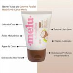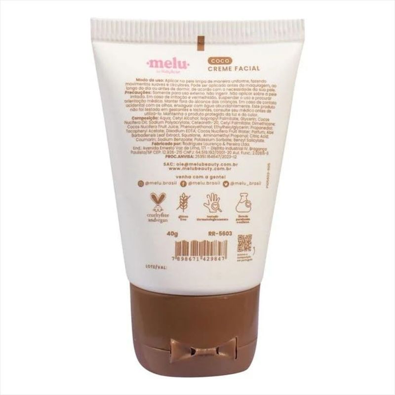 Ruby Rose RR65603 Creme Facial Nutritivo Coco Melu 40g – Hidratação e Nutrição em Um Só Produto!Conheça o poder transformador do Creme Facial Nutritivo Coco Melu da Ruby Rose! Este creme leve e de rápida absorção foi cuidadosamente formulado para proporcionar uma hidratação intensa e duradoura à sua pele, deixando-a radiante e revitalizada. Sua combinação única de ingredientes naturais promove uma experiência sensorial inigualável, garantindo que sua rotina de cuidados com a pele seja prazerosa e eficaz.Ingredientes e Composição:A fórmula excepcional do Creme Facial Nutritivo Coco Melu é enriquecida com:Óleo de Coco: conhecido por suas propriedades hidratantes e nutritivas, que ajudam a suavizar e revitalizar a pele.Extrato de Mel: rico em vitaminas e antioxidantes, proporciona uma proteção extra contra os danos ambientais e promove a regeneração celular.Ácido Hialurônico: responsável por manter a umidade da pele, garantindo uma aparência saudável e jovem.Cada ingrediente foi selecionado a dedo para maximizar os benefícios e a eficácia do produto!Modo de Usar:Para aproveitar ao máximo este creme incrível, aplique uma pequena quantidade sobre a pele limpa e seca do rosto e pescoço, massageando suavemente até completa absorção. Utilize diariamente, pela manhã e à noite, para resultados ainda mais impressionantes.Benefícios:Desfrute de uma pele profundamente hidratada, suave ao toque e com um brilho natural. O Creme Facial Nutritivo Coco Melu potencializa a elasticidade da pele, reduzindo a aparência de linhas finas e proporcionando uma sensação de frescor ao longo do dia. Experimente a durabilidade que este creme oferece, com resultados visíveis em pouco tempo.Indicação:Ideal para todos os tipos de pele, especialmente as que necessitam de uma hidratação intensa e cuidados extras. Se você busca um produto que resolva problemas de ressecamento ou que amplifique a luminosidade da sua pele, o Creme Facial Nutritivo Coco Melu é a solução perfeita para você!Principais Dúvidas:Muitos consumidores questionam a compatibilidade do produto com peles sensíveis. A boa notícia é que a fórmula é dermatologicamente testada, sendo segura para a maioria dos tipos de pele. Além disso, não contém parabenos, o que torna o uso ainda mais seguro e eficaz.Sobre Nós:Na Negabella, nos dedicamos a oferecer produtos de qualidade superior que transformam a sua rotina de beleza. Acreditamos que cada cliente merece o melhor em cuidados pessoais e, por isso, trabalhamos com marcas que compartilham nossos valores de inovação e praticidade. Se a sua compra for um presente especial, basta nos informar após a compra, e teremos o prazer de enviar em uma embalagem encantadora!Não perca a chance de experimentar o Creme Facial Nutritivo Coco Melu da Ruby Rose e descubra o secreto caminho para uma pele hidratada, radiante e cheia de vida!