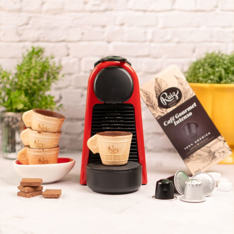 Ruiz Cup - Casquinha Crocante com Chocolate - 15 xícaras O Cup é um jeito novo e diferente de deixar o seu Ruiz Coffees ainda mais gostoso. Uma xícara feita de casquinha de sorvete e coberta com um delicioso chocolate por dentro. Você toma o seu café com um sabor especial e depois a xícara se transforma em sobremesa. A sua paixão por café também é a nossa Há 90 anos, cultivamos nas fazendas da nossa família a tradição dos melhores aromas, desde o plantio à colheita, e agora até a embalagem. Somos um dos maiores produtores do mundo e mantemos o controle de cada etapa, garantindo uma seleção rigorosa dos grãos para que você tenha sempre o café mais saboroso na sua xícara. Conservação Manter em local seco e fresco. Após cada consumo, fechar a embalagem para manter as casquinhas crocantes. INGREDIENTES: Casquinha waffer (fécula de mandioca, farinha de trigo fortificada com ferro e ácido fólico, açúcar, clara de ovo desidratada, gordura vegetal, fibra de trigo, sal, emulsificante lecitina de soja (Agrobacterium tumefaciens) e aromatizante), cobertura sabor chocolate meio amargo (açúcar, gordura vegetal fracionada, cacau em pó, sal, emulsificantes lecitina de soja (Agrobacterium tumefaciens) e polirricinoleato de poliglicerol e aromatizante). ALÉRGICOS: CONTÉM DERIVADOS DE OVO, TRIGO E SOJA. PODE CONTER CEVADA, CENTEIO, AVEIA E LEITE. CONTÉM GLÚTEN. CONTÉM LACTOSE.
