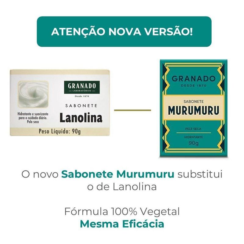 Sabonete Em Barra Murumuru Tratamento Pele Seca Hidratante 90gSabonete em Barra Murumuru Tratamento Pele Seca Hidratante 90gLançamento da linha Tratamento, o Sabonete de Murumuru Granado foi desenvolvido para cuidar de peles secas e ressecadas, oferecendo hidratação e limpeza diária.Indicado para uso no rosto e no corpo, sua fórmula com manteiga de murumuru contribui para o conforto e a hidratação da pele.Sua identidade visual é moderna, vibrante e mantém o compromisso com a eficácia e o cuidado da pele.Vegano. Testado dermatologicamente.Modo de usar: Aplique o produto sobre a pele molhada, friccionando suavemente para obter espuma. Em seguida enxague.Código: 128103Referência: 7896512989918Marca: GranadoCapacidade: 90mlPeso: 100gCor: BrancoMaterial: MurumuruDimensões do produto (AxLxC): 8,50x6,00x3,00cmConteúdo da embalagem: 1 Sabonete 90g
