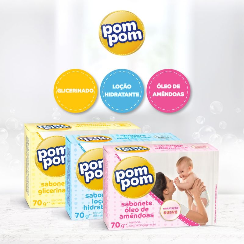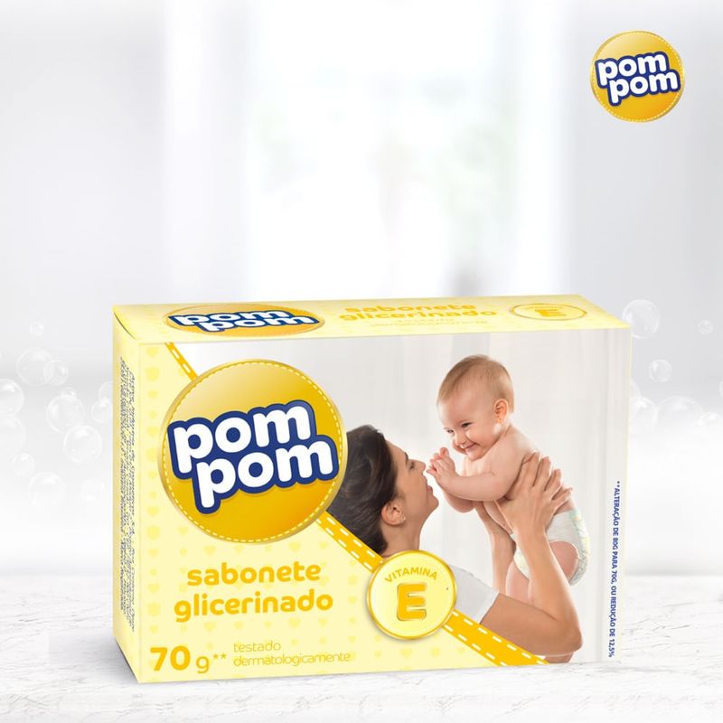 Sabonete Infantil Pom Pom Glicerinado com Vitamina E 70g Limpeza delicada com hidratação e cuidado especial para a pele do bebê! O Sabonete Infantil Pom Pom Glicerinado com Vitamina E foi desenvolvido especialmente para a pele sensível das crianças, proporcionando higiene suave e proteção diária. Sua fórmula com glicerina e vitamina E ajuda a manter a maciez natural, enquanto deixa uma fragrância leve e agradável. Com 70g, o Sabonete Pom Pom Glicerinado é ideal para o banho diário do bebê, garantindo limpeza sem agredir a pele. A glicerina auxilia na hidratação, evitando o ressecamento, enquanto a vitamina E oferece ação antioxidante e nutritiva, contribuindo para uma pele mais saudável e protegida. Dermatologicamente testado, é seguro para uso frequente. Benefícios Limpa suavemente sem agredir a pele delicada do bebê; Enriquecido com glicerina, que hidrata e protege contra o ressecamento; Contém vitamina E, que nutre e auxilia na proteção da pele; Fórmula delicada, segura e dermatologicamente testada; Fragrância suave que proporciona sensação de frescor e bem-estar. Modo de Uso Aplique o sabonete sobre a pele úmida, massageando suavemente até formar espuma. Enxágue bem com água abundante. Pode ser usado diariamente em todo o corpo. Precauções e Advertências Uso externo; Evitar contato com os olhos; Manter fora do alcance de crianças sem supervisão; Em caso de irritação, suspender o uso e procurar orientação médica.