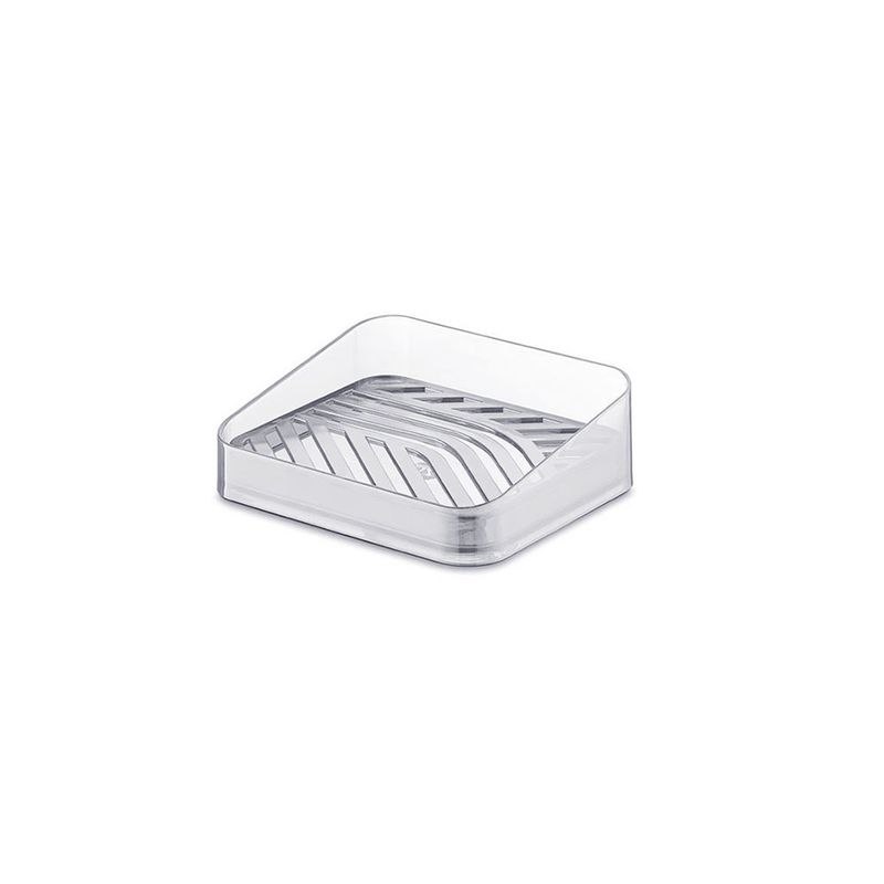 Saboneteira transparente. O porta sabonete em barra possui transparência que valoriza o conteúdo interno, facilitando a sua identificação. Os jogos de banheiro são produzidos com material 100% reciclável, atóxico e livres de Bisfenol A (BPA Free). Contêm: 1 Saboneteira Medidas: 9,7 x 8,4 x 3,2 cm Material: Poliestireno Casacha é uma loja especializada em acessórios para banheiro, lavanderia e utensílios de cozinha.