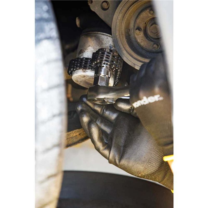 Saca-filtro de Óleo, com Corrente Dupla Ajustável até 143 mm Vonder OstenVonder - Conteúdo da embalagem: 1 Chave saca filtro de óleo com corrente dupla. Aplicação: Indicado para remoção e colocação do filtro de óleo de veÃculos. Ajustável de acordo com o tamanho do filtro, com a capacidade máxima de à 143 mm. Destaques: Possui soquete cromado com encaixe quadrado de 1/2" com corrente dupla. Garantia - E (CDC): Garantia legal: 90 dias Referência: 3573012143 Massa aproximada (peso): 0,500 kg Material: Aço endurecido Acabamento: Corrente: fosfatizado; Soquete: cromado Medida do encaixe: Interno: 1/2" quadrado; Externo: chave 21 mm hexagonal Capacidade de abertura: Máxima: Ã143 mm Destaques Comercial: Possui soquete cromado com encaixe quadrado de 1/2" e corrente dupla. Aplicação Comercial: Ferramenta para remover e instalar filtros de óleo, ajustável até Ã143 mm. Características Gerais do Produto: Garantia: • 3 Meses