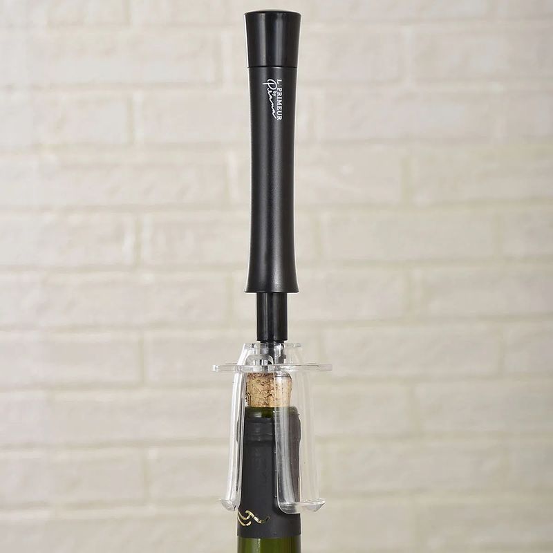 - Destaques: • Com design clássico e minimalista, com ele você vai abrir seus vinhos com muita praticidade e o mínimo esforço. • Ao bombear, o saca-rolhas joga pressão para dentro da garrafa expelindo a rolha sem parti-la ou esfarelar partes, como pode ocorrer as vezes com saca rolhas tradicionais. • Para usar é simples: Insira a agulha verticalmente através da rolha de vinho e bombeie ar na garrafa de 3 a 7 vezes. A rolha automaticamente deslizará para fora após o bombeamento de ar. Para retirar a rolha do saca rolhas, basta empurrá-la para fora. - Especificações: • Peso Total: 0.67 (gr) • Altura: 4.00(cm). • Largura: 5.00(cm). • Profundidade: 21.00(cm).