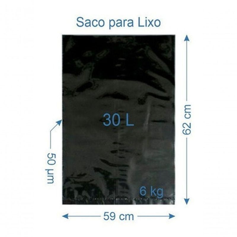 Saco para Lixo 30 Litros para Descarte de Resíduos em Plástico Reciclado Reforçado Doméstico PretoFacilite o descarte diário de resíduos com o saco para lixo Higipack Saco para Lixo 30 Litros, ideal para uso doméstico e pequenos escritórios. Com capacidade para até 30 litros ou 6 kg, ele oferece praticidade na organização do lixo e na gestão de resíduos. Produzido em plástico reciclado e com espessura de 50 micras (0,05 mm), garante maior resistência para evitar rasgos e vazamentos. Suas dimensões de 59 cm x 62 cm proporcionam bom espaço interno para acomodar o lixo com segurança. A cor preta confere aparência discreta, adequada para diferentes ambientes.Vantagens e diferenciais Capacidade de 30 litros: comporta até 6 kg de resíduos com segurança. Plástico reciclado: contribui para um descarte mais consciente e sustentável. Espessura de 50 micras: maior resistência para evitar rasgos e vazamentos. Dimensões 59 x 62 cm: espaço adequado para o lixo diário em casa ou escritório. Embalagem com 100 unidades: rendimento prolongado para o uso cotidiano.Especificações Técnicas Marca: Higipack Tipo de produto: Saco para lixo Modelo: Saco para Lixo 30 Litros Cor predominante: Preto Material principal: Plástico reciclado Capacidade: Até 30 litros ou 6 kg Espessura: 50 micras (0,05 mm) Dimensões do saco: 59 cm (largura) x 62 cm (comprimento) Conteúdo da embalagem: 100 sacos para lixo de 30 litros Garantia: 6 mesesObservações importantes As cores do produto podem variar de acordo com a calibração e resolução do monitor ou tela utilizada. As imagens são meramente ilustrativas; o produto real pode apresentar pequenas variações de tonalidade, formato ou acabamento.