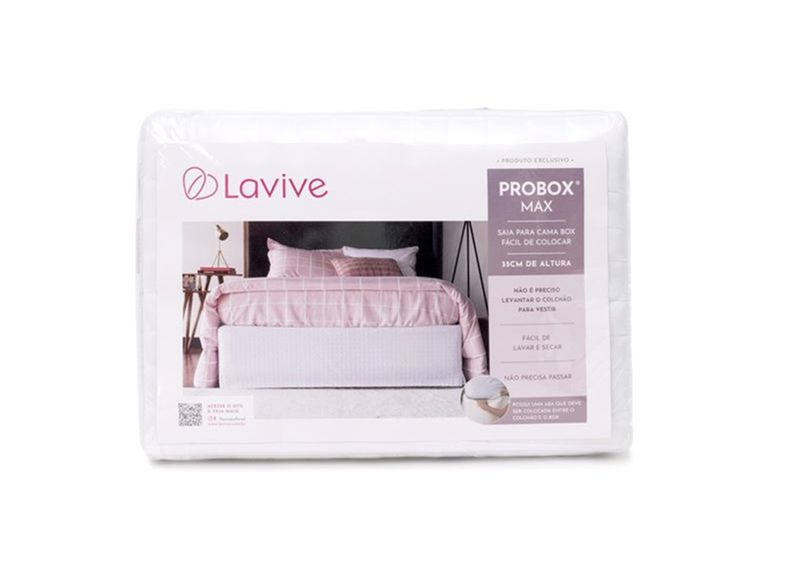 SAIA PARA CAMA BOX FÁCIL DE COLOCAR Mais praticidade e rapidez na colocação do Probox com as abas para encaixe, que permitem que o coloque sem retirar o colchão. O Probox® é uma saia babado fácil de colocar, que envolve o box da cama, protege contra sujeiras e ainda completa a decoração com muito charme. Muito mais prático e versátil, não é preciso retirar ou levantar o colchão para colocá-lo. Possui uma aba para fixação de 15cm que deve ser colocada entre o colchão e o box. Itens : 01 Saia para cama box. Composição : Percal 100% Poliéster. Tamanho: Queen - 1,98m x 1,58m x 35cm Como cuidar – Poliéster Esse produto é feito de Percal 100% Poliéster. O percal de poliéster é um tecido sintético de muita qualidade, super macio e que é muito mais durável. Ou seja… são peças para você usar e guardar por muito tempo aí na sua casa! É um tecido fácil de lavar e, por sua leveza, é super fácil de secar. Além disso, não amassa com facilidade. Confira alguns cuidados com esse tecido: #1 Peças de poliéster costumam ser resistentes à máquina. Por isso, pode lavar o seu produto direto na máquina de lavar sem problemas, tendo o cuidado de separar diferentes tecidos para evitar a formação das famosas bolinhas. #2 Não use alvejantes a base de cloro. Esses tipos de produtos podem manchar ou desbotar o tecido e não queremos que isso aconteça, não é mesmo? #3 Esse tecido é super leve e também muito delicado, por isso, não deve ser levado à secadora. É recomendado deixá-lo secando no varal e à sombra, evitando possíveis danos que podem ser causados pelos raios do sol. #4 Tecidos de poliéster podem queimar ou marcar com o ferro de passar. Mas não se preocupe, pois esse tecido não amassa com facilidade e uma dica ótima é fazer uma mistura com água + álcool + amaciante e espirrar por todo produto para desamassar de forma muito mais simples. Uma outra sugestão é ter em casa aqueles aparelhos vaporizadores que são perfeitos para desamassar peças com tecidos mais delicados.
