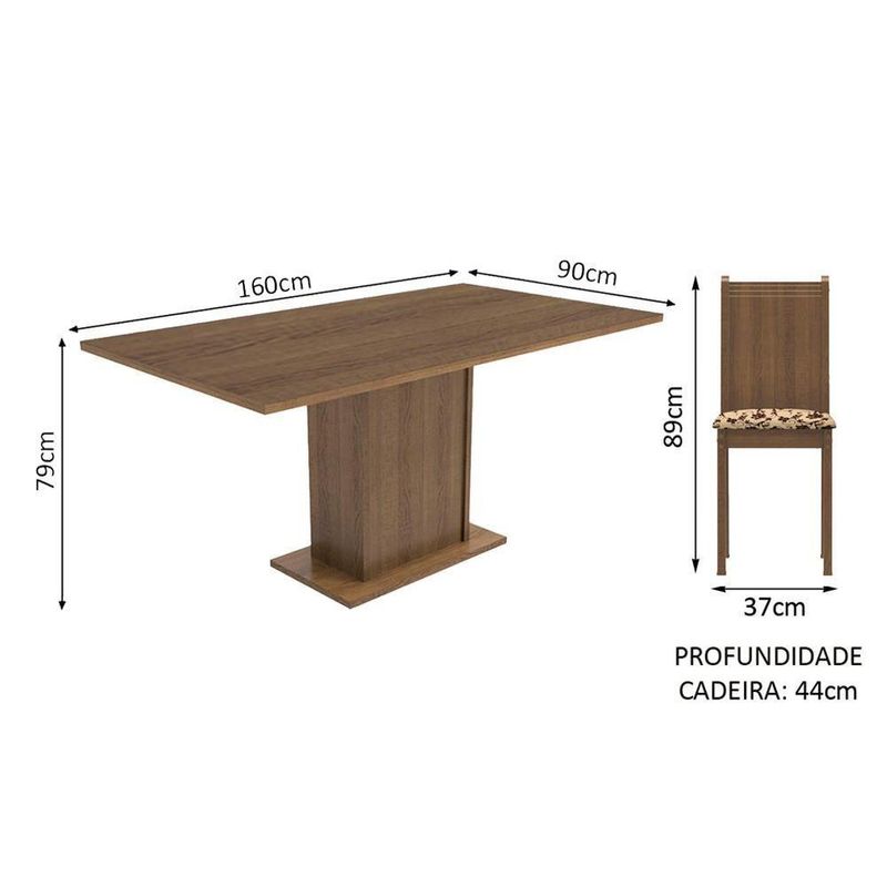 Sala de Jantar Megan Mesa Tampo de Madeira 6 Cadeiras MadesaPensando em renovar a sua sala de jantar com móveis de qualidade e design moderno? Confira o Conjunto de Jantar Megan da Madesa!Características do Produto:- A mesa em pedestal é mais confortável e o tampo de madeira transmite robustez e firmeza.- Além disso, permite ótima circulação no ambiente e o espaço para as pernas é ótimo, acomodando perfeitamente seis pessoas.- As cadeiras são fabricadas em MDF e MDP, com encosto em madeira.- Assento estofado em tecido Floral Bege Marrom, um material com toque suave e que se adapta às mais variadas decorações.- O acabamento da mesa e das cadeiras é no padrão amadeirado Rustic, em Pintura Poliéster com sete camadas de proteção.- A pintura oferece resistência a álcool, água e calor. Além disso, é ecológica, isenta de vapores que vão para a atmosfera.Especificações Técnicas:- Marca: Madesa- Itens Inclusos: 1 mesa retangular com tampo de madeira; 6 cadeiras de madeira com encosto em madeira e assento estofado- Dimensões da Mesa (LxAxP): 160 cm X 79 cm X 90 cm- Dimensões das Cadeiras (LxAxP): 36 cm X 89 cm X 44 cm- Cor: Rustic- Tecido: Floral Bege Marrom- Material do Tampo: Madeira- Dimensões da Embalagem (LxAxP): 91,5 cm X 54,8 cm X 166,5 cm- Peso Bruto: 74,3 kg- Referência: 044805ZXTFBMGarantia: 3 meses