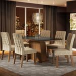 Sala de Jantar Rafaela Mesa Tampo de Vidro 6 Cadeiras MadesaRenove agora a sua sala de jantar com o Conjunto de Jantar Rafaela da Madesa!Características do Produto: - A mesa é retangular, muito espaçosa e possui o pé em pedestal.- É uma opção que agrega beleza e conforto, pois possui espaço ideal para acomodar perfeitamente as pernas.- O tampo em madeira possui o topo em pintura preta, que recebe um vidro incolor sobreposto, detalhe que traz muita elegância ao conjunto.- As cadeiras são grandes e robustas com estrutura em MDF.- O encosto e o assento possuem estofamento total com uma combinação de espumas de alta densidade aumentando a durabilidade e o conforto.- Para completar, contam com revestimento em tecido Suede Imperial.- Costura especial estilo matelassê, formando gomos na parte frontal e traseira do encosto, proporcionando maciez e beleza.- O acabamento é feito em pintura Poliéster de alta resistência com sete camadas de proteção, que oferece maior qualidade e durabilidade ao móvel.- Além disso, a pintura é ecológica, isenta de vapores prejudiciais à atmosfera.- O conjunto é composto pela mesa e seis cadeiras.Especificações Técnicas:- Marca: Madesa- Itens Inclusos: 1 mesa com base pedestal e tampo de MDP com vidro incolor sobreposto; 6 cadeiras com encosto e assento estofados em tecido- Dimensões da Mesa (LxAxP): 160 cm X 80 cm X 90 cm- Dimensões das Cadeiras (LxAxP): 45 cm X 94 cm X 57 cm- Madeira: MDF- Acabamento: Pintura Poliéster- Cor: Amadeirado Rustic e Preto- Material do Tampo: Vidro e Madeira- Tecido: Suede Imperial- Dimensões da Embalagem (LxAxP): 97 cm X 165,6 cm X 166,5 cm- Referência: MDJA0600787KSIMGarantia: 3 meses