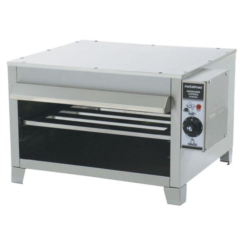 Salamandra Elétrica 60x50 SL6 Metalmaq Forno Gratinador Inox 220VSalamandra Elétrica 60X50 SL6 MetalmaqA Salamandra Elétrica 60X50 SL6 Metalmaq é indicada para gratinar e aquecer massas, carnes, torradas e pratos quentes em geral. Confeccionada toda em chapa de aço inox 430 de 0,5mm a 0,95mm, pode ser equipada com 1 ou 2 queimadores infravermelho.Características:Consumo: 4,5kW/hPotência: 4500WTemperatura: 0°C a 300°CPeso: 26kgDimensões internas (CxAxL): 60x50x20cmDimensões externas (CxAxL): 74x55x38cmProduto certificado pelo INMETRO.Informações adicionais:Marca: MetalmaqModelo: SL6Frente: 74cmAltura: 55cmProfundidade: 38cmPeso: 26kgConsumo: 4,5kW/hSalamandra Elétrica 60X50 SL6 Metalmaq é na Atau.