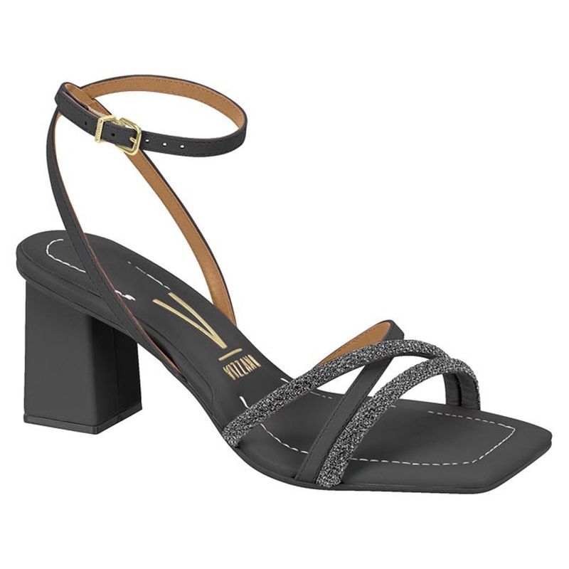 Sandália Feminina Preto Black Diamond Vizzano 6455.119 A sandália feminina Vizzano é confeccionada com material sintético. Um modelo clássico e sofisticado perfeito para o seu dia a dia. Se destaca pelas tiras em strass e frente quadrada. A palmilha macia proporciona máximo conforto aos pés. O salto grosso traz maior estabilidade a cada passo. Fechamento em fivela no tornozelo.