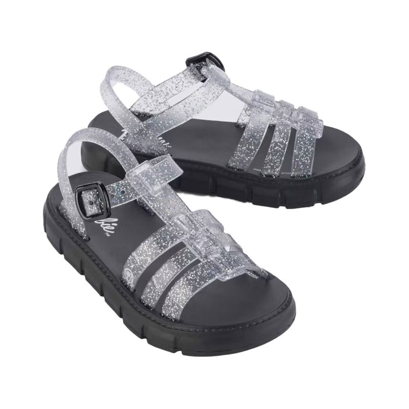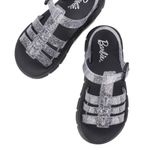 Sandália Infantil Barbie Land Preto Glitter Grendene Kids 22980-AV762 A nova sandália da Barbie, vem super fashion para as meninas conectadas com esse universo da moda. A sola flatform é super leve e confortável com EVA. As tiras vêm inspiradas nos modelos das fishermens que seguem fortes como indicação de moda.
