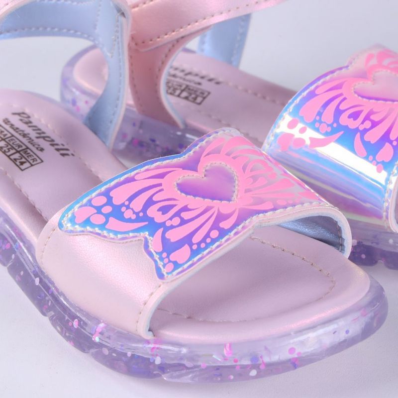 Referência: 697.035 Material Externo: Sintético Material Interno: Sintético Detalhes: Pespontos / Holográfico Solado: Borracha Fechamento: Velcro Salto: 1,5cm (Aprox.) Sandália Infantil Feminina Pampili – Conforto, Magia e Brilho Para Encantar Cada Passo A Sandália Infantil Feminina Pampili foi criada para transformar os dias das pequenas em momentos de pura diversão, conforto e encanto. Com design lúdico e detalhes que brilham aos olhos, ela combina delicadeza, segurança e estilo em uma peça perfeita para acompanhar a imaginação infantil. O cabedal traz um aplique em forma de borboleta com coração ao centro, em efeito holográfico que muda conforme a luz — um detalhe que encanta e deixa qualquer look mais especial. O fecho em velcro garante praticidade na hora de calçar, oferecendo ajuste perfeito e autonomia para a criança. O solado transparente com glitter é o toque final de magia, enquanto a palmilha macia proporciona conforto para usar o dia todo, seja em passeios, festinhas ou momentos de diversão. Design lúdico e encantador – borboleta holográfica com coração em destaque. Fecho em velcro – fácil de calçar, com ajuste seguro e prático. Solado com glitter – brilho delicado que deixa a sandália ainda mais especial. Palmilha macia – conforto prolongado para brincar sem limites. Durabilidade e leveza – perfeita para acompanhar o ritmo das pequenas. Assinatura Pampili – referência em conforto, estilo e cuidado infantil. A Sandália Pampili é ideal para meninas que adoram brilho, conforto e detalhes cheios de charme. Um calçado que une beleza, suavidade e magia em cada passo! Sandália infantil Pampili, sandália feminina infantil borboleta, sandália infantil com glitter, sandália infantil confortável, sandália holográfica Pampili, sandália infantil para meninas, calçado infantil Pampili.