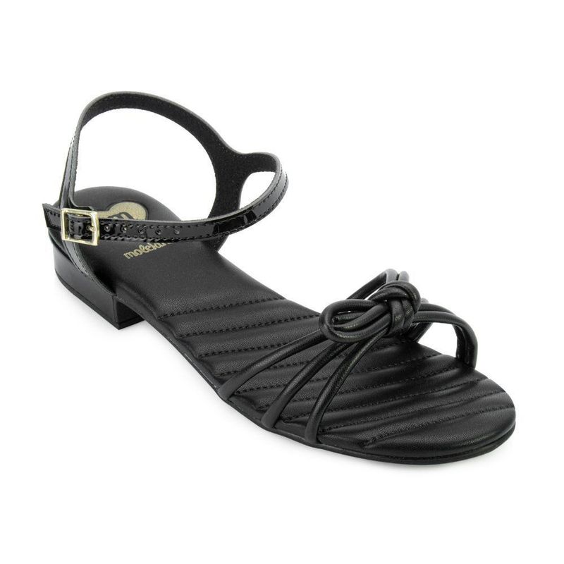 Nome: Sandália Molekinha MK23-23182. Gênero: Feminino. Indicado para: Moda - Dia a Dia. Estilo da Peça: Casual. Material Externo: Verniz/Alternativo. Detalhe: Nó com as tiras do cabedal. Fechamento: Fivela ajustável. Palmilha: Anatômica e macia. Tipo de Salto: Baixo com 2 cm de altura. Solado: Borracha antiderrapante. Peso do Produto: 519 g (o peso varia de acordo com a numeração). Garantia do Fabricante: Contra defeito de fabricação. Origem: Nacional. Código Produto: 04430005. Marca: Molekinha.