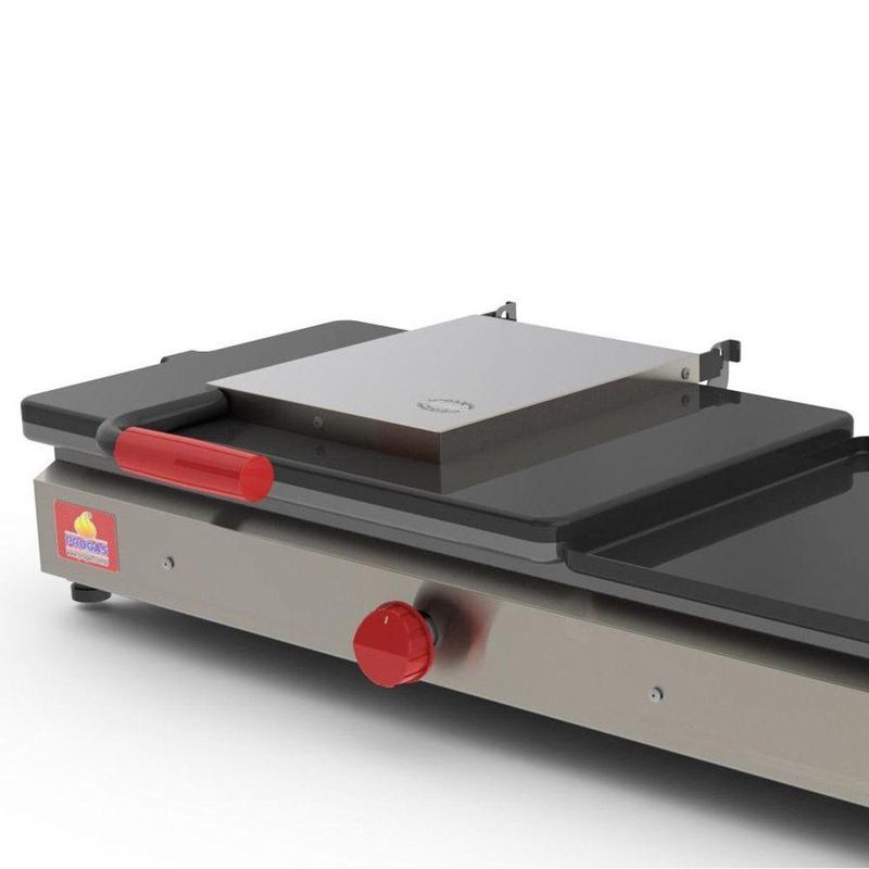 Sanduicheira Dupla 1 Prensa Lanche Gigante Gás Pr-950 G - ProgasSanduicheira Dupla 1 Prensa Lanche Gigante Gás Pr-950 G – Progas - Medidas úteis: Medidas úteis chapa: 2 x 47cm x 31cm Característica e Descrição Técnica: - Estrutura em aço inox;- Chapa e Prensa.- Sistema de gaveta nos queimadores;- Baixa pressão.- Consumo Médio 0,380 KG/h- Peso Líquido – 13,8 Kg- Peso Bruto – 14,5 Kg- Medidas uteis chapa : 2 x 47cm x 31cm- Medidas totais : 17cm A x 97cm L x 43cm P- Medidas com a embalagem: 18cm A x 980cm L x 45cm PPerguntas Frequentes: - Qual a medida da chapa?Medidas úteis chapa : 2 x 47cm x 31cmMedidas úteis prensa : 2 x 47cm x 31cmMedidas totais : 18cm A x 98cm L x 45cm P - Este modelo utiliza qual gás ?Utiliza gás GLP - baixa pressão - Tem estoque?Temos o produto em estoque sim, na confirmação do seu pedido até o meio dia, postamos no mesmo dia.- O produto é novo ?Sim, o produto é novo, lacrado na caixa.- Produto é certificado pelo INMETRO ?Sim, produto de muita qualidade, certificado pelo INMETRO e selo segurança SENAI. NA