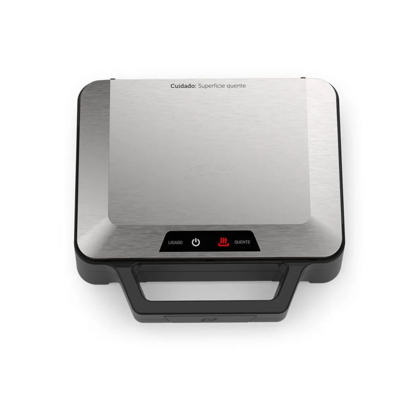 Sanduicheira Oster OSAN500-220V Inox: Praticidade e Segurança para Sanduíches PerfeitosNome do ProdutoA Sanduicheira Oster OSAN500-220V Inox é a solução ideal para quem busca preparar sanduíches deliciosos e crocantes com rapidez e eficiência. Perfeita para o dia a dia, ela atende à necessidade de refeições práticas sem abrir mão do sabor.Problema que o produto resolve / Necessidade que atendeDesenvolvida pela Oster, esta sanduicheira combina design moderno em inox escovado com alta performance. Com 1000W de potência, ela garante um aquecimento rápido e uniforme, ideal para preparar lanches para toda a família. Seu uso é intuitivo e seguro, tornando-a um item indispensável em qualquer cozinha.Características e Benefícios ChavePotência de 1000W: Aquecimento rápido e eficiente para sanduíches crocantes.Design em Inox Escovado: Elegância e durabilidade para sua cozinha.Alça com Toque Frio: Maior segurança durante o manuseio.Fecho Robusto: Garante que o sanduíche fique bem prensado.Chapa Quente com Recuo: Previne queimaduras acidentais, aumentando a segurança.Detalhes AdicionaisCertificação Inmetro (OCP SGS): Qualidade e segurança comprovadas.Modo de Operação Manual: Controle total sobre o preparo do seu sanduíche.Instruções de Uso e CuidadosDicas de Uso: Pré-aqueça a sanduicheira por alguns minutos antes de usar. Unte levemente as chapas com manteiga ou óleo para evitar que o pão grude.Recomendações de Limpeza/Manutenção: Limpe as chapas com um pano úmido após cada uso, quando estiverem frias. Não utilize produtos abrasivos.Ficha TécnicaMarca: OsterCor: inox escovadoMaterial: aço inox e plásticoTipo de Produto: SanduicheiraVoltagem: 220 VPotência: 1000 WPeso Líquido: 1400 gPeso Bruto: 1900 gCertificação: Inmetro (OCP SGS)Modo de Operação: manualDimensões da Embalagem (AxLxP): 111x275x254 mmEAN: 7898742843411Código de Referência: OSAN500-220