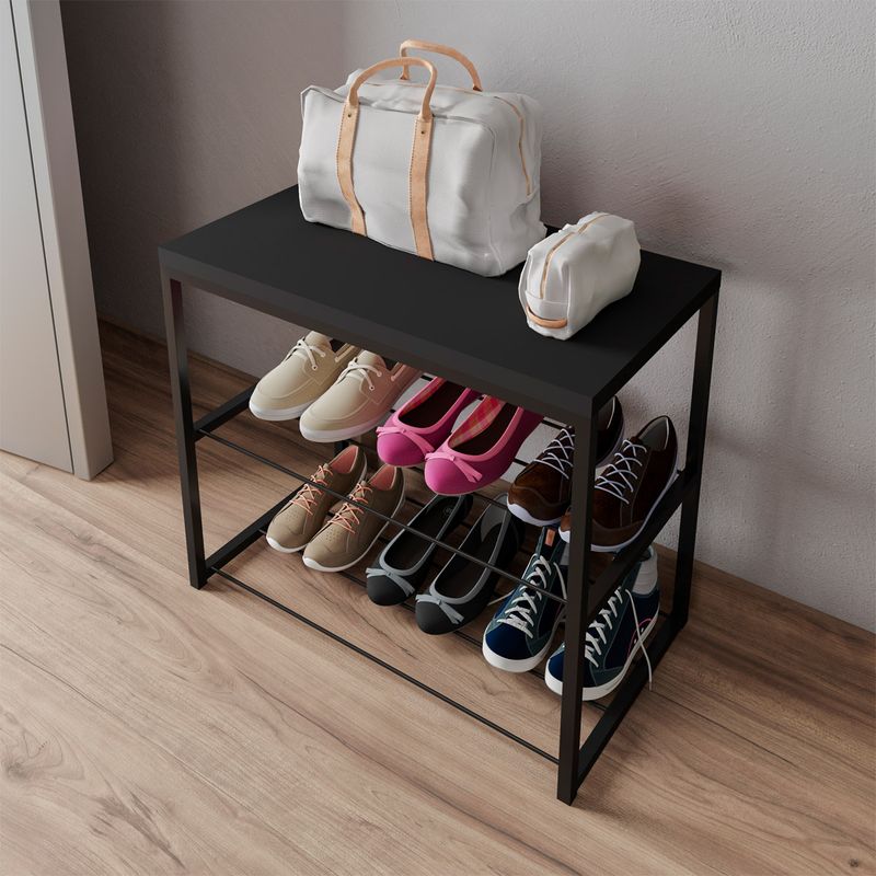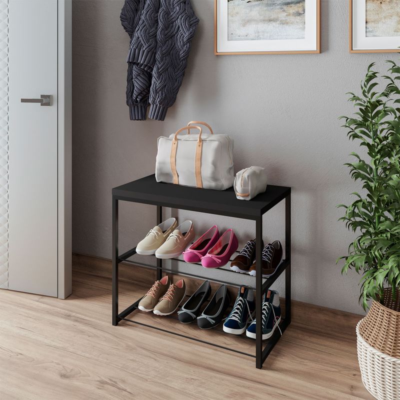 A sapateira banco com tampo em MDP e prateleira em aço é uma solução prática para organizar calçados em diversos ambientes, como halls, quartos, salas e escritórios. Seu estilo industrial combina estrutura metálica preta com acabamento em pintura UV, garantindo uma superfície resistente e fácil de limpar.Com 47 cm de altura, 54 cm de largura e 30 cm de profundidade, oferece espaço para armazenar sapatos e servir como banco para sentar pontualmente.A prateleira de aço aramado sustenta os calçados de forma segura, enquanto o tampo em MDP proporciona um apoio firme e moderno.A sapateira inclui sapatas plásticas para proteger o piso contra riscos e deslizamentos. O item suporta até 120 kg quando usado como assento pontual, mas a carga fixa máxima é de 15 kg.A instalação é feita diretamente no chão, sem sistema de fixação adicional. Caso precise de um móvel para organizar sapatos e otimizar espaços, esta sapateira banco industrial é indicada para uso diário.Especificações:Cabe até: 8 pares de sapatosPossui: 2 prateleirasFormato: RetangularMaterial: Tampo em MDP, prateleira em aço aramadoMedidas: Altura 47 cm, Largura 54 cm, Profundidade 30 cmInstalação: No chãoUso Principal: Guardar e organizar sapatosAcabamento: Pintura UVEstilo: IndustrialLimitações: Suporta até 120 kg para assento pontual; carga fixa de até 15 kgItens Inclusos: Prateleiras de aço aramado, tampo em MDP, sapatas plásticasAmbientes Indicados: Halls, entradas, salas, quartos, escritóriosNome do Produto Sapateira Banco Tampo em MDPModelo / Linha Estilo IndustrialMarca CarismaCor PretoMaterial Tampo em MDP, Prateleira em AçoAcabamento Pintura UVAltura 47 cmLargura 54 cmProfundidade 30 cmPeso 4,57 kgItens Inclusos Prateleiras de aço aramado, tampo em MDP, sapatas plásticasInstalação ChãoEstilo IndustrialAmbientes Indicados Halls, entradas, salas, quartos, escritóriosUso Principal Guardar e armazenar sapatosLimitação de carga 120 kg (assento pontual), 15 kg (carga fixa)